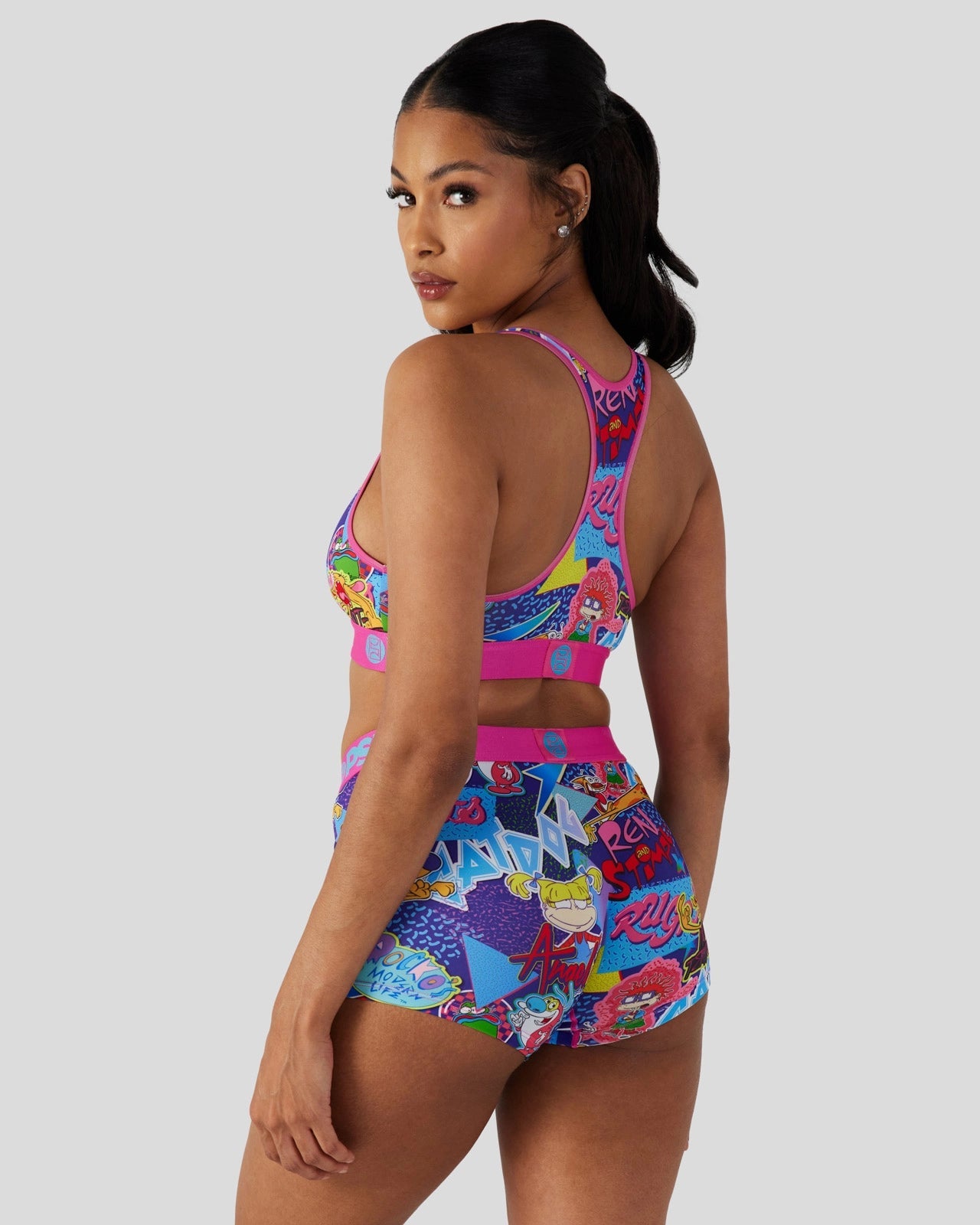 Bring back the good old days when cartoons were at their peak in this bra that features your favorite characters from Rugrats. CatDog. and Ren & Stimpy. Made from a silky poly blend. this the ’90s Miami Sports Bra is breathable yet slightly compressive. bringing you the comfort and support you need for everything you get into.