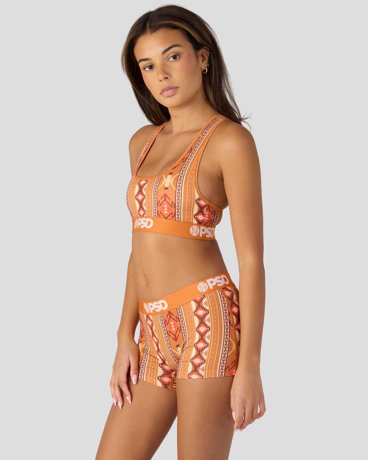 The Aztec Dust Sports Bra is made from a silky poly blend and is breathable yet slightly compressive. bringing you the comfort and support you need for everything you get into.