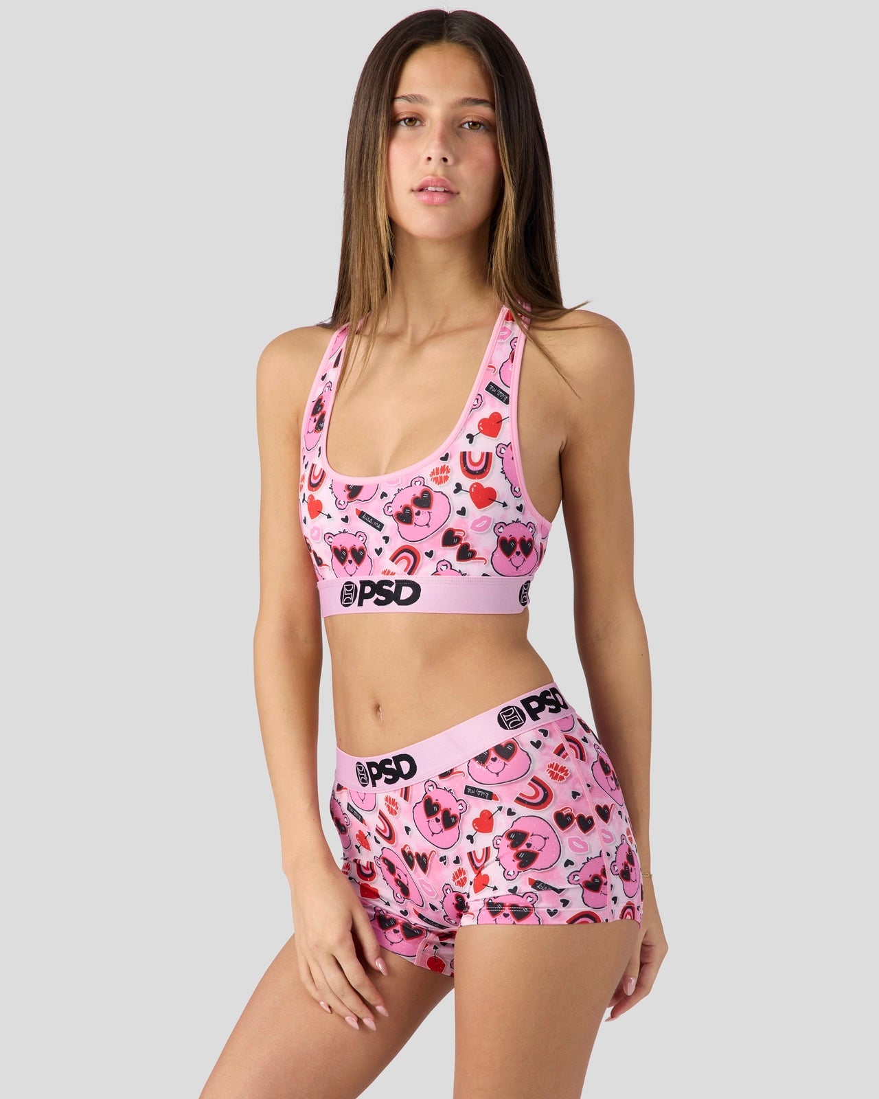 Love is in the bear with this new Valentine’s Day-ready drop from Care Bears x PSD. The Love Bears Sports Bra is made from a silky poly blend and is breathable yet slightly compressive. bringing you the comfort and support you need for everything you get into.
