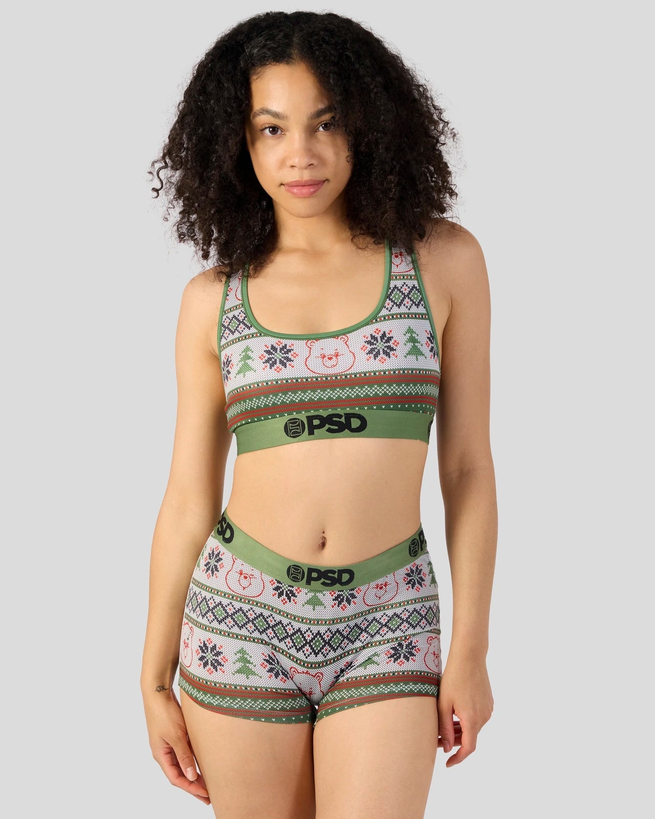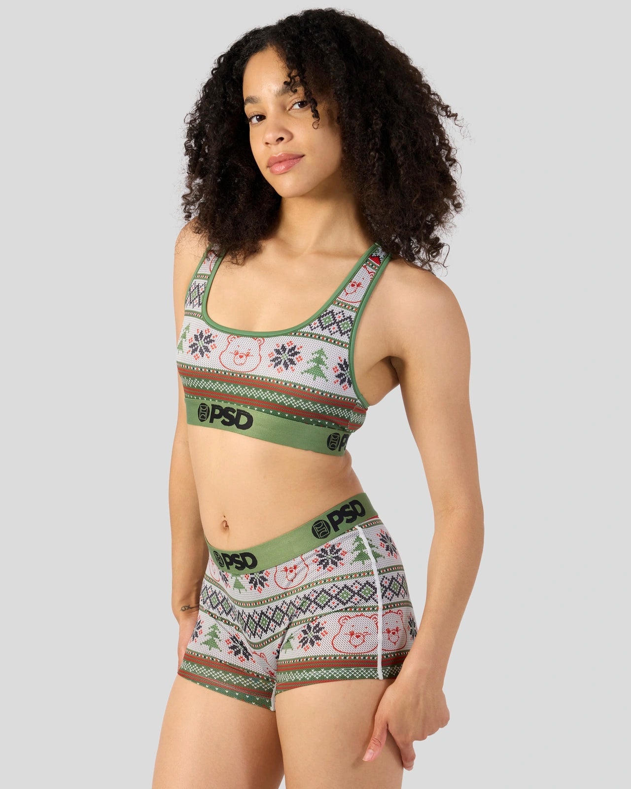 The holidays with a Care Bear twist. The Ugly Sweater Sports Bra from the Care Bears x PSD is made from a silky poly blend and is breathable yet slightly compressive. bringing you the comfort and support you need for everything you get into.