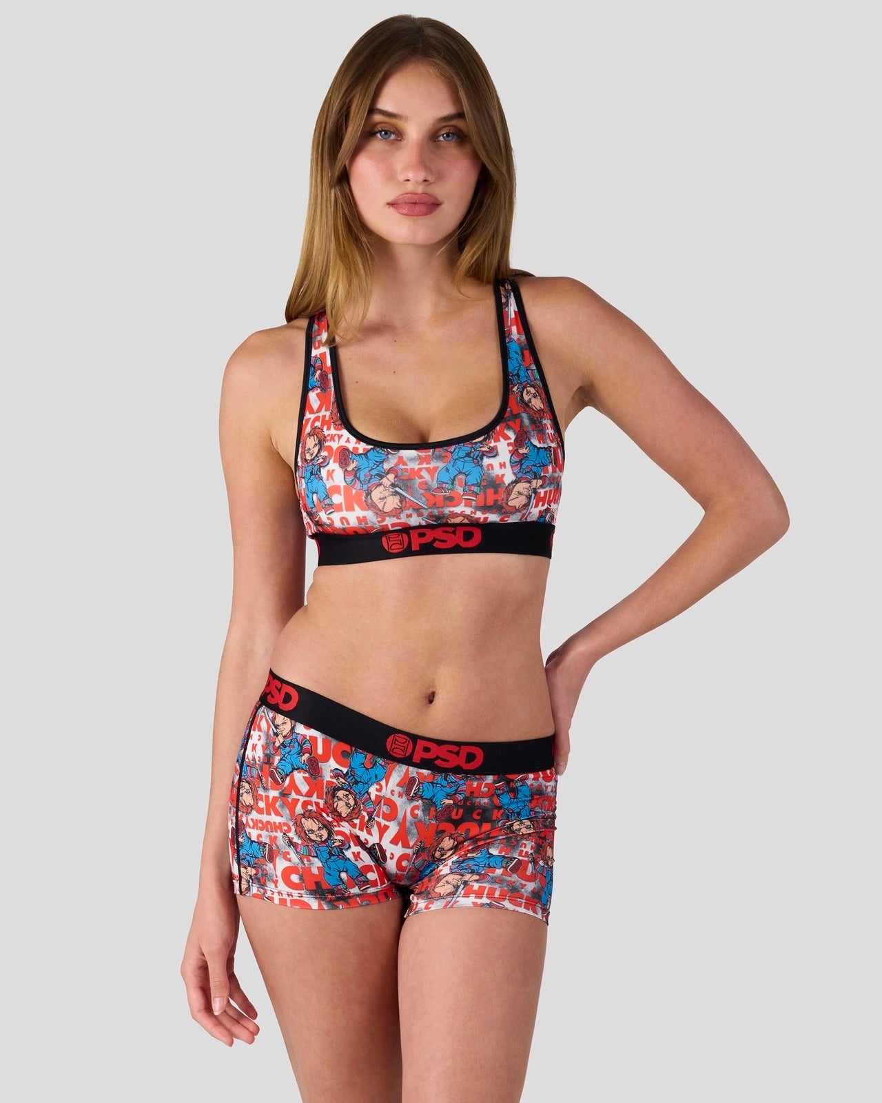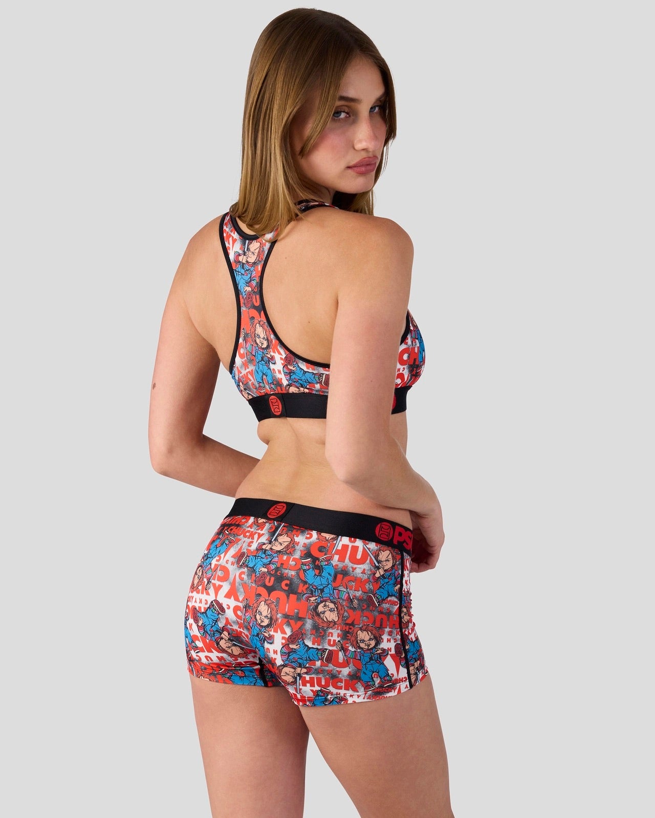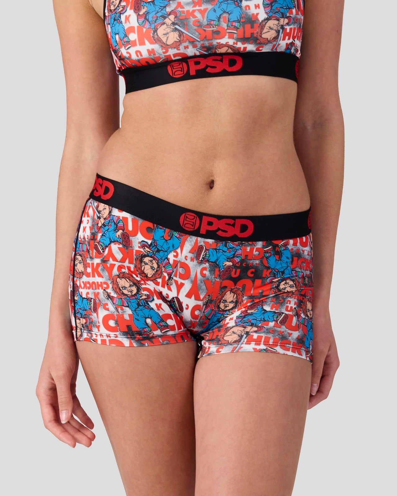 Straight from the toy box of nightmares. this Chucky x PSD look is ready to play. The Wanna Play Boy Short is made from a silky poly blend with a comfortable full-coverage. keep-you-in fit. The PSD boy shorts are perfect for everyday wear and working out.