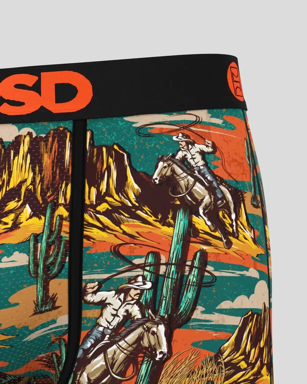 Find your giddy up in this new Western-inspired pair. The Deserted briefs include our ultra-comfortable Signature WaistBand. a breathable MicroMesh pouch. and four-way stretch. The PSD 7 Standard Length Briefs won’t roll or ride and were built for everything. from everyday wear to your toughest workouts.