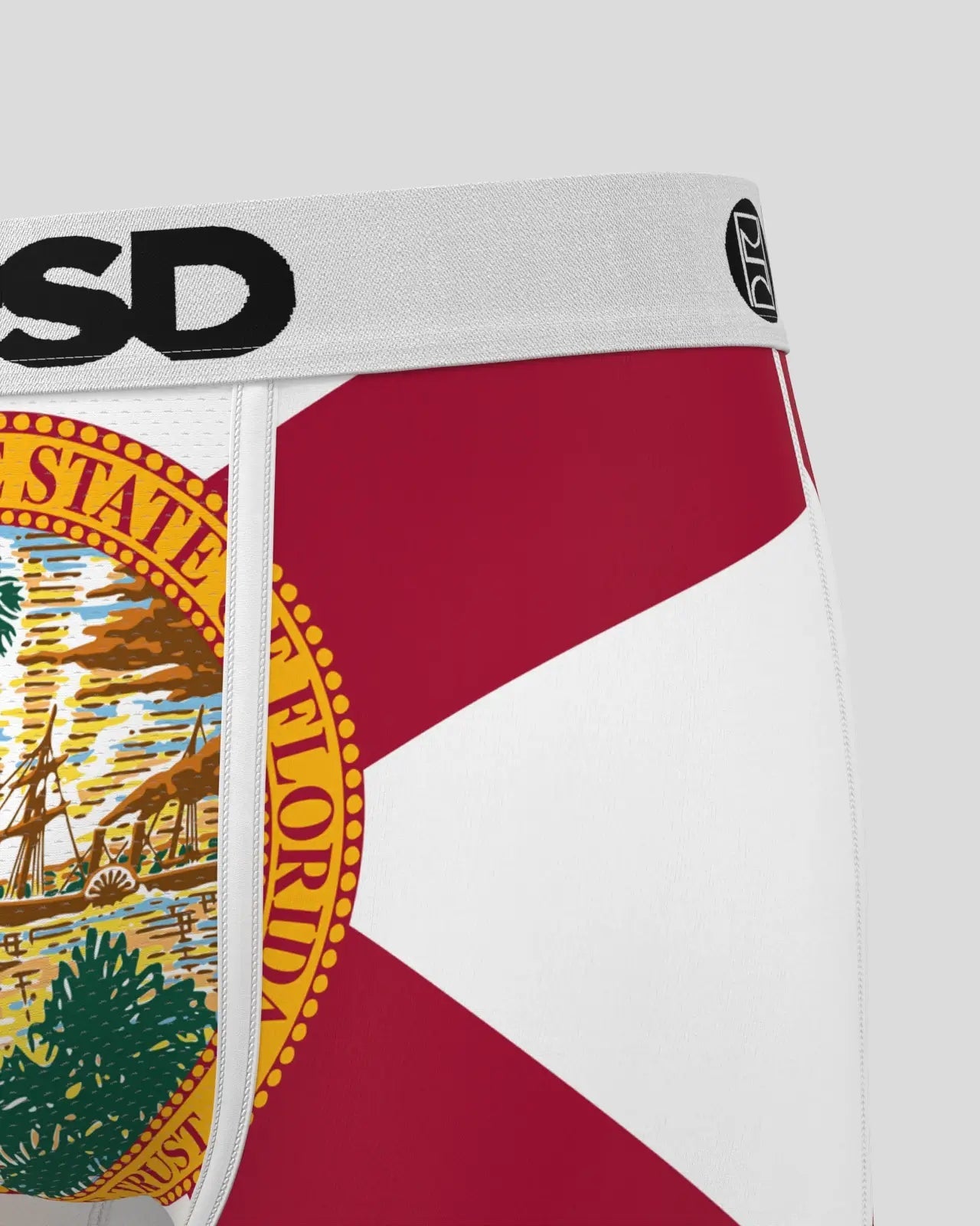 Rep the Sunshine State in this new men’s pair. The Florida briefs feature the state’s iconic flag and include our ultra-comfortable Signature WaistBand. a breathable MicroMesh pouch. and four-way stretch. The PSD 7 Standard Length Briefs won’t roll or ride and were built for everything. from everyday wear to your toughest workouts.