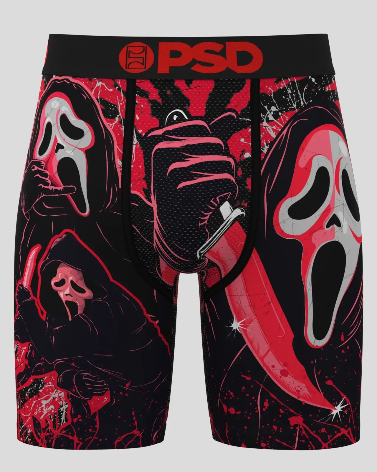 This look from Ghost Face x PSD brings major slasher energy to your rotations. The Call Me briefs include our ultra-comfortable Signature WaistBand. a breathable MicroMesh pouch. and four-way stretch. The PSD 7 Standard Length Briefs won’t roll or ride and were built for everything. from everyday wear to your toughest workouts.
