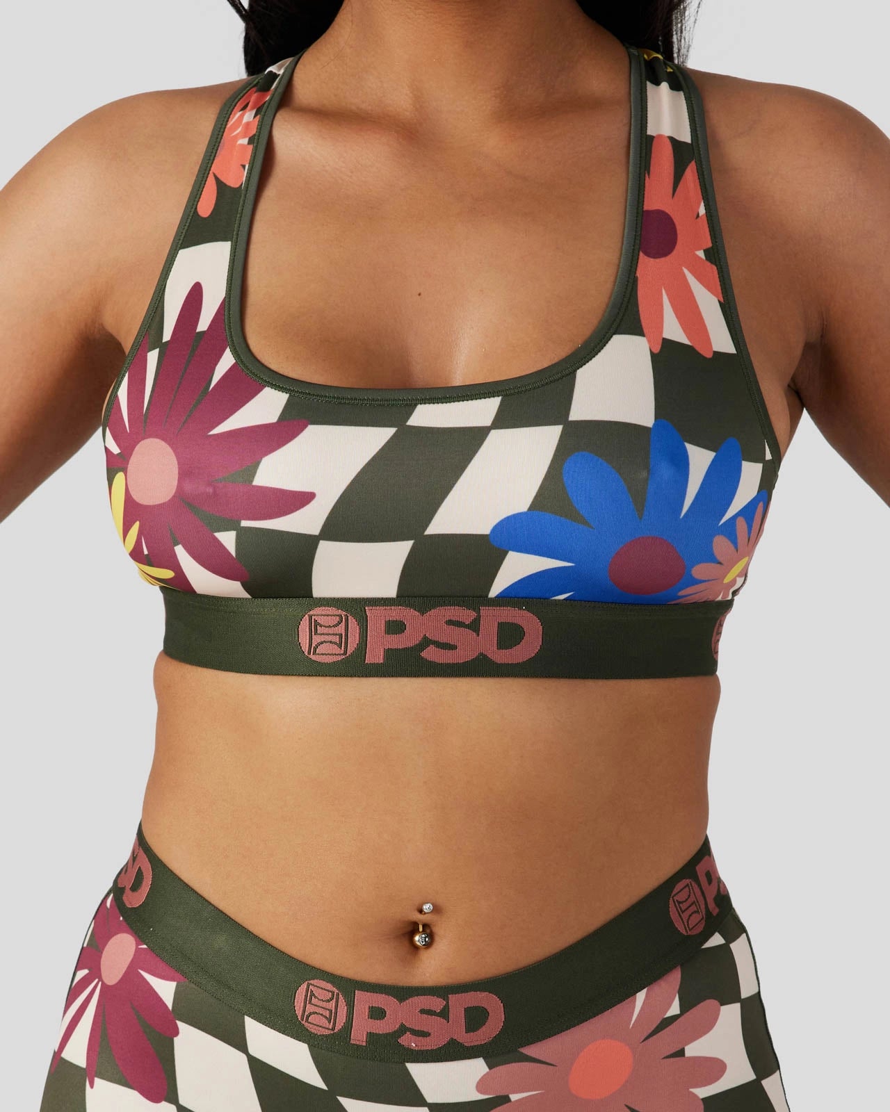 With a floral and on-trend checkered print. this bra is the perfect girly addition to your intimates drawer. The Women’s Girly Pop Sports Bra is made from a silky poly blend and is breathable yet slightly compressive. bringing you the comfort and support you need for everything you get into.