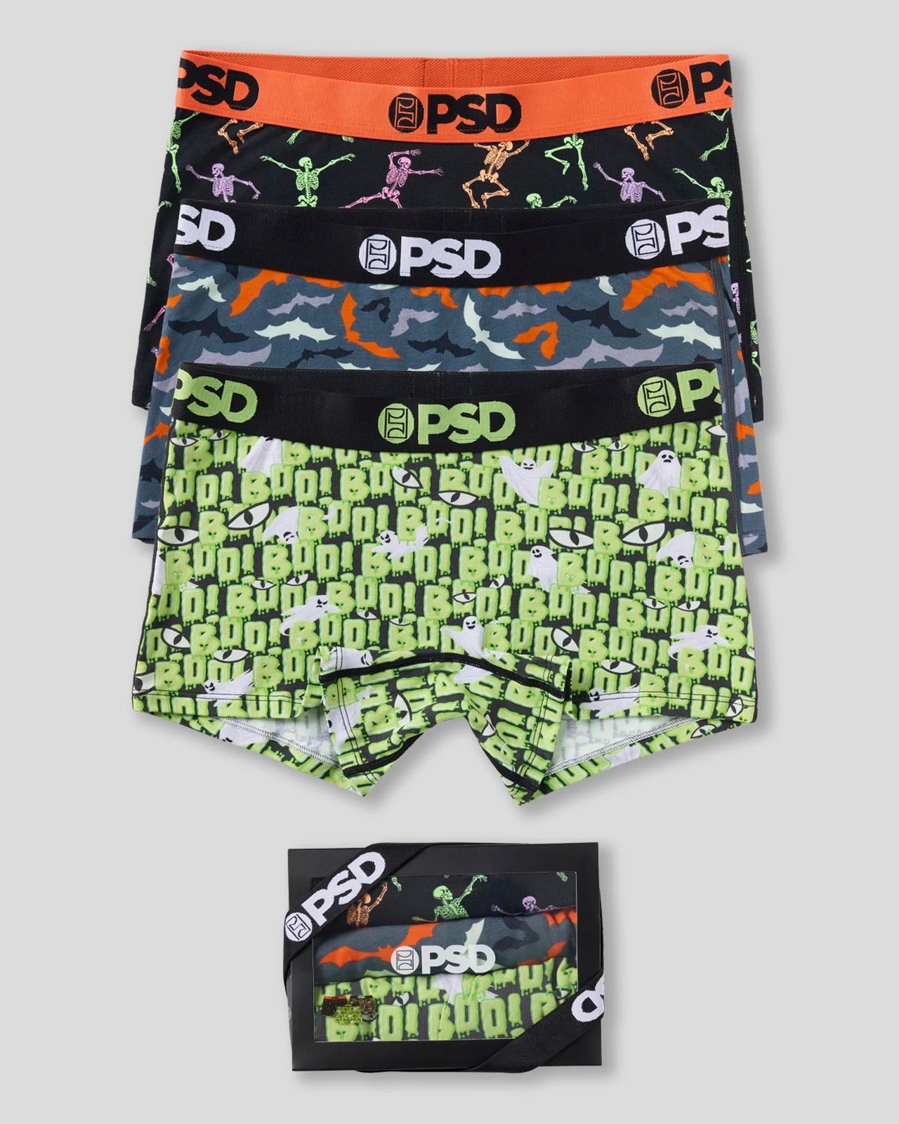 Triple the fright. triple the fun. Switch up your scares with the pairs of the Hallow Modal Boy Short 3 Pack. Made of a super soft modal blend. they’re just right for everyday wear. especially when looking for a more classic. less silky underwear feel. The skeleton style features a glow-in-the-dark print.