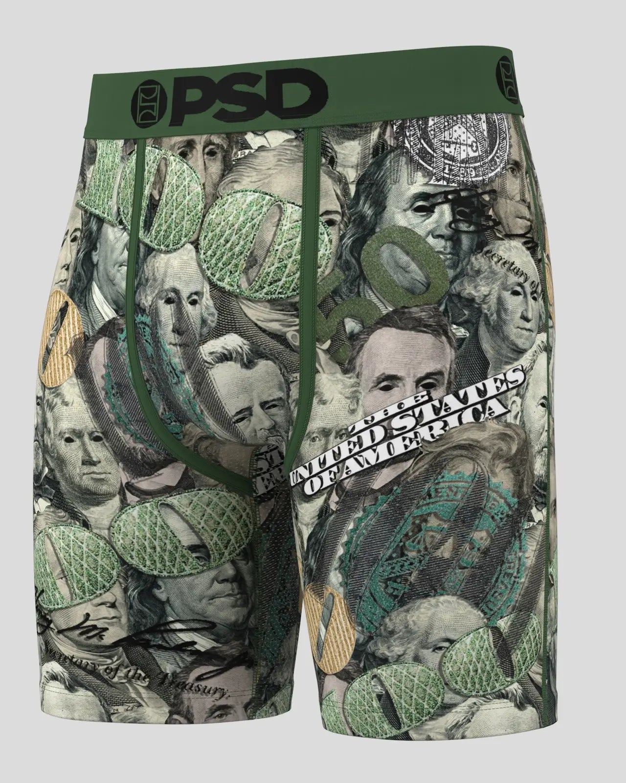 It’s all about the dolla. dolla. billz. The Money Gang briefs are built with our ultra-comfortable Signature WaistBand. a breathable MicroMesh pouch. and four-way stretch that moves with you. The PSD 7 Standard Length Briefs won’t roll. ride. or quit ?? made to crush everything from all-day wear to your hardest workouts.