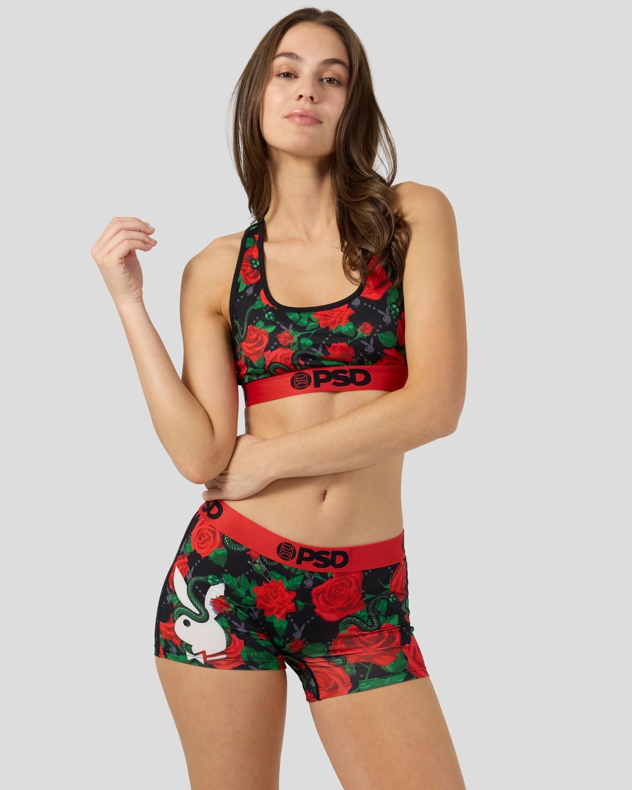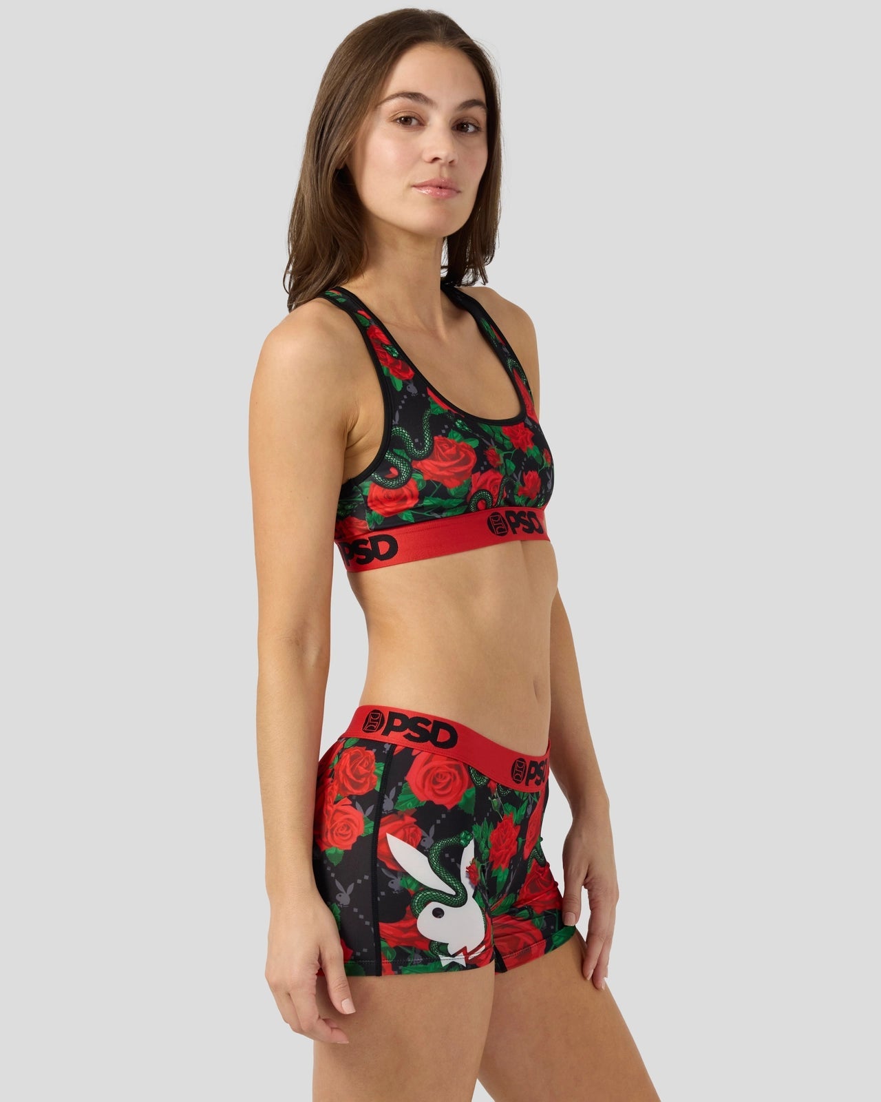 From Playboy x PSD. the Slither Sports Bra features a luxury-inspired. floral print and is made from a silky poly blend that’s breathable yet slightly compressive. bringing you the comfort and support you need for everything you get into.