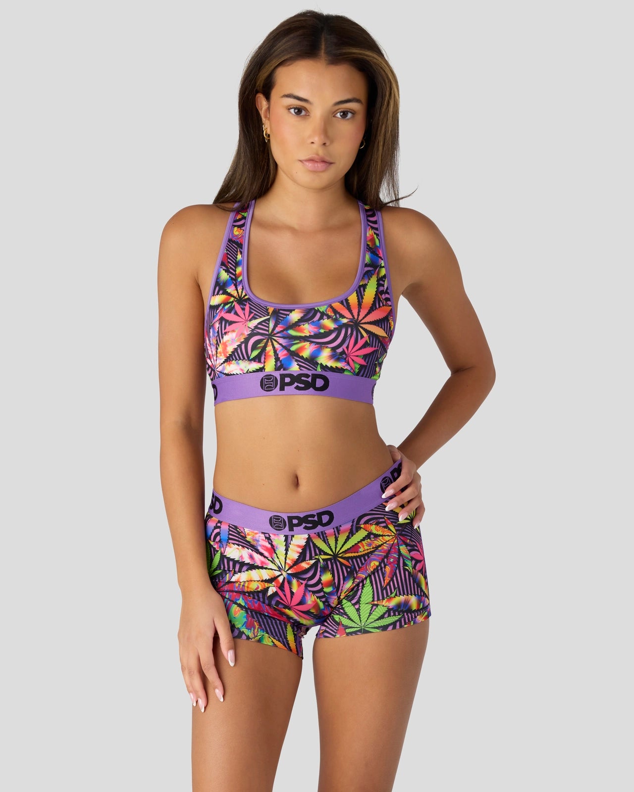 Wear your greens with this new look that’s 420 ready. The Purp High Sports Bra is made from a silky poly blend and is breathable yet slightly compressive. bringing you the comfort and support you need for everything you get into.