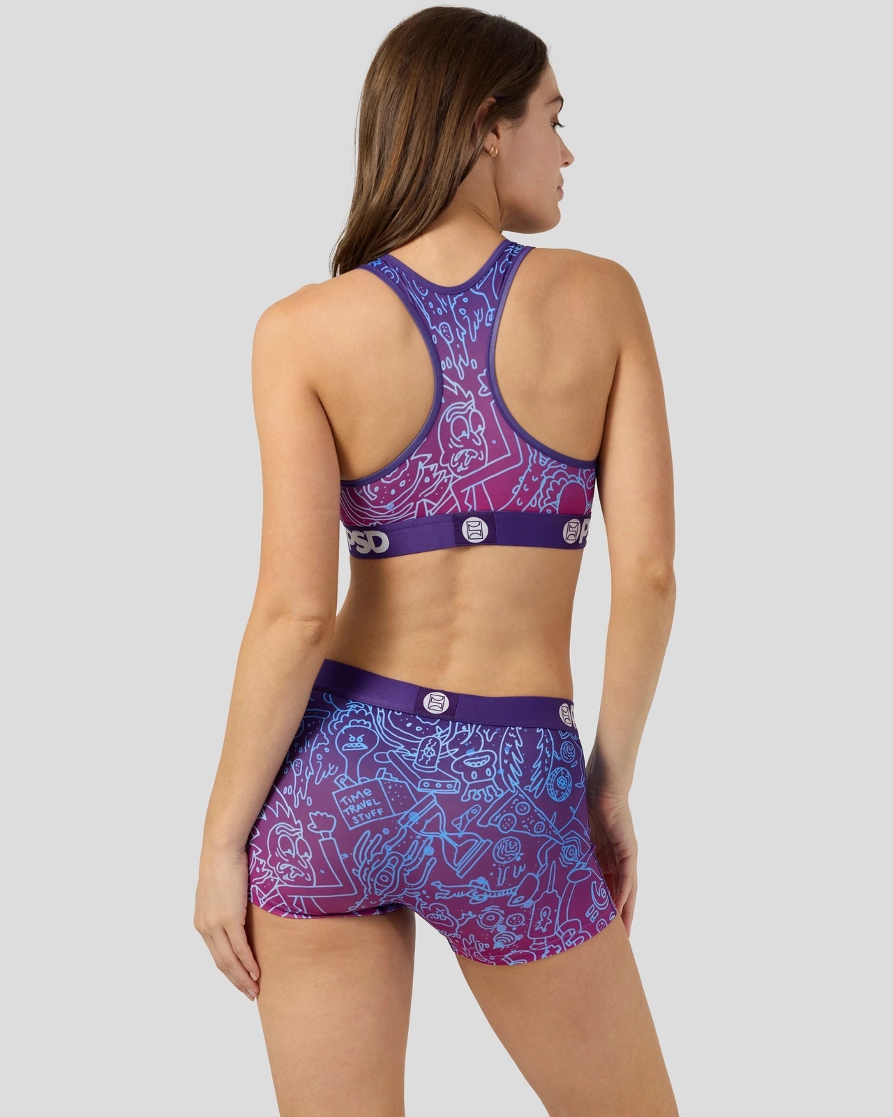 We time-traveled and saw this pair in your future. The Rick & Morty x PSD Fader Sports Bra is made from a silky poly blend and is breathable yet slightly compressive. bringing you the comfort and support you need for everything you get into.