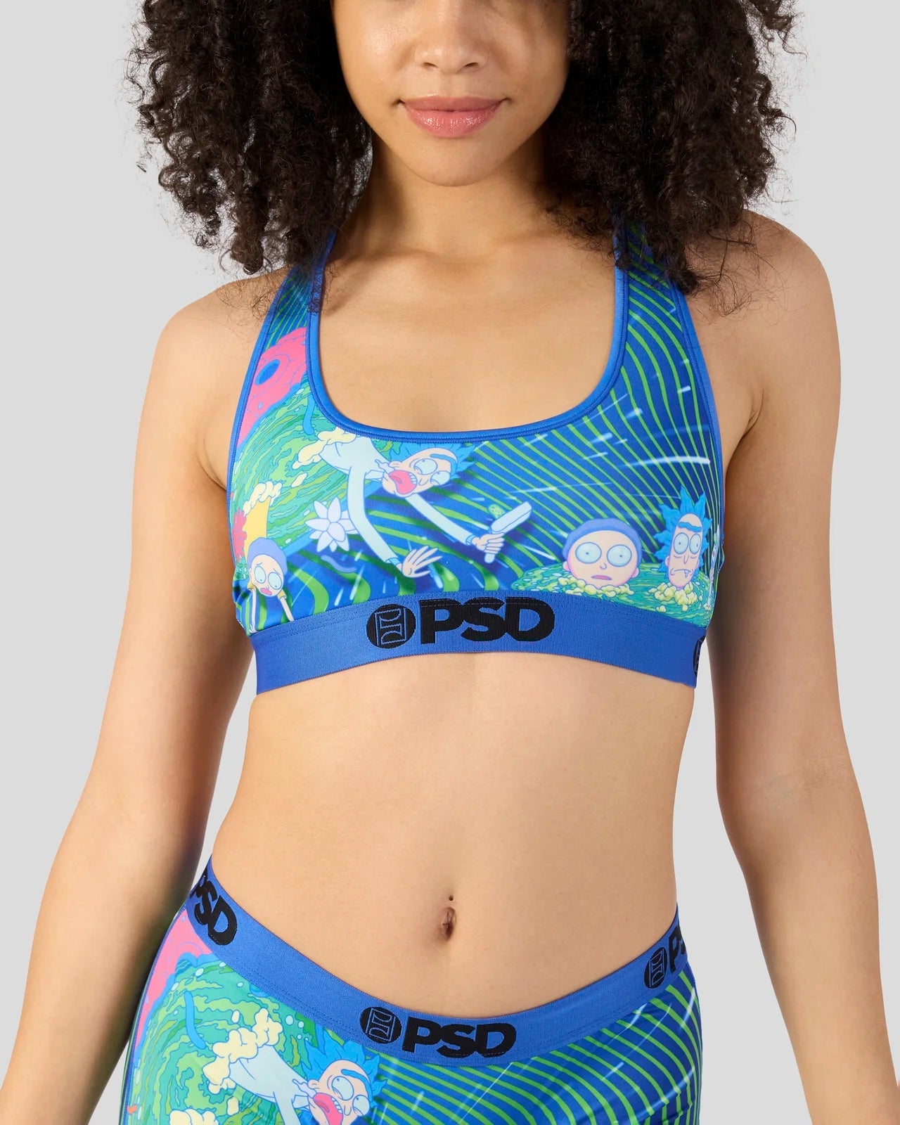 Step into another dimension with Rick & Morty x PSD. The Portal Haze Sports Bra is made from a silky poly blend and is breathable yet slightly compressive. bringing you the comfort and support you need for everything you get into.