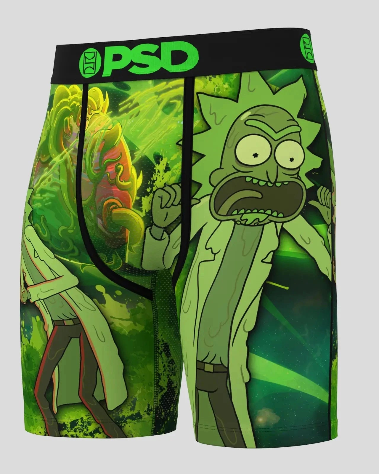 The Slime Rick briefs from Rick and Morty x PSD include our ultra-comfortable Signature WaistBand. a breathable MicroMesh pouch. and four-way stretch. The PSD 7 Standard Length Briefs won’t roll or ride and were built for everything. from everyday wear to your toughest workouts.