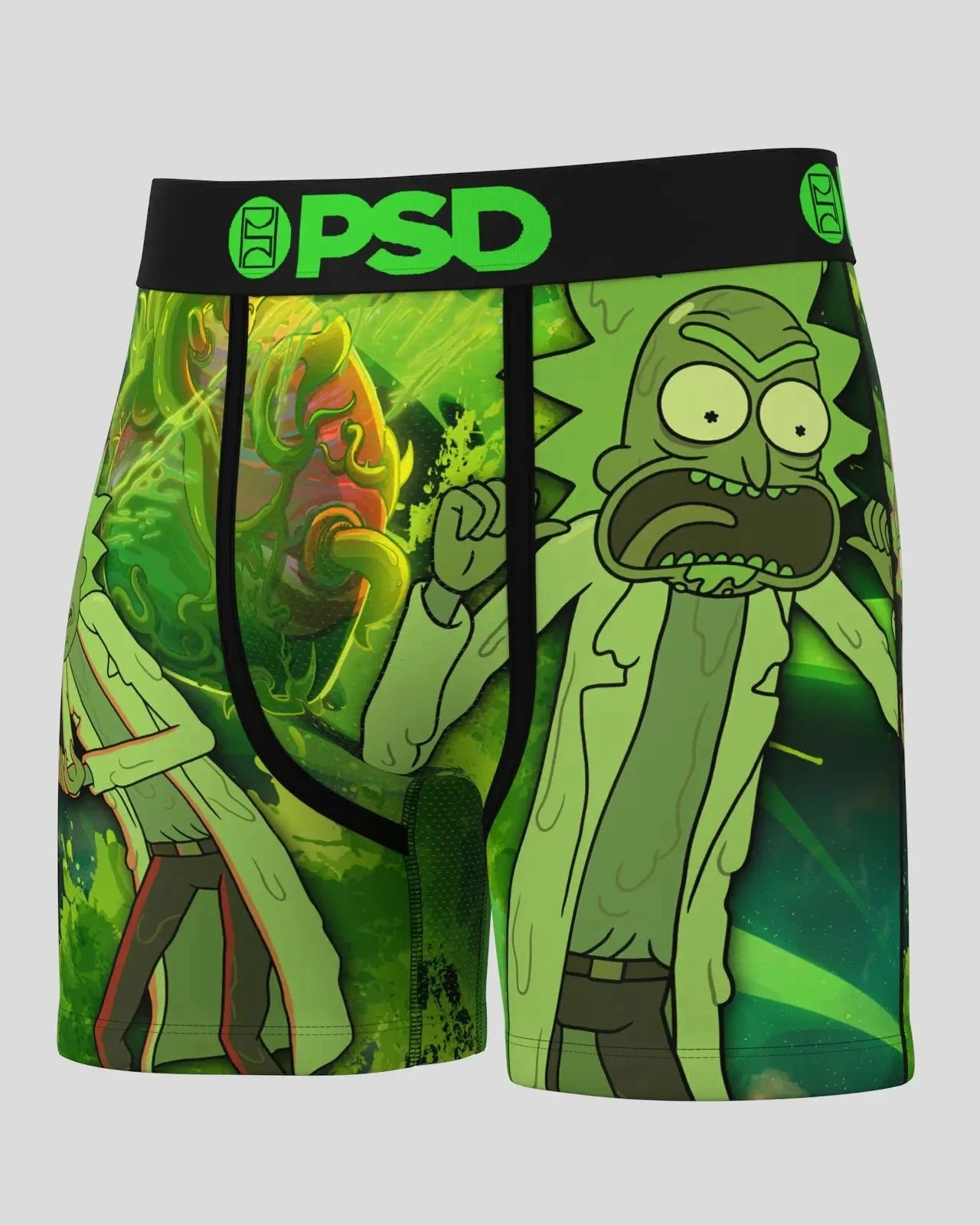 The Slime Rick briefs from Rick and Morty x PSD include our ultra-comfortable Signature WaistBand. a breathable MicroMesh pouch. and four-way stretch. The PSD 5 Mid Length Briefs won’t roll or ride and were built for everything. from everyday wear to your toughest workouts.