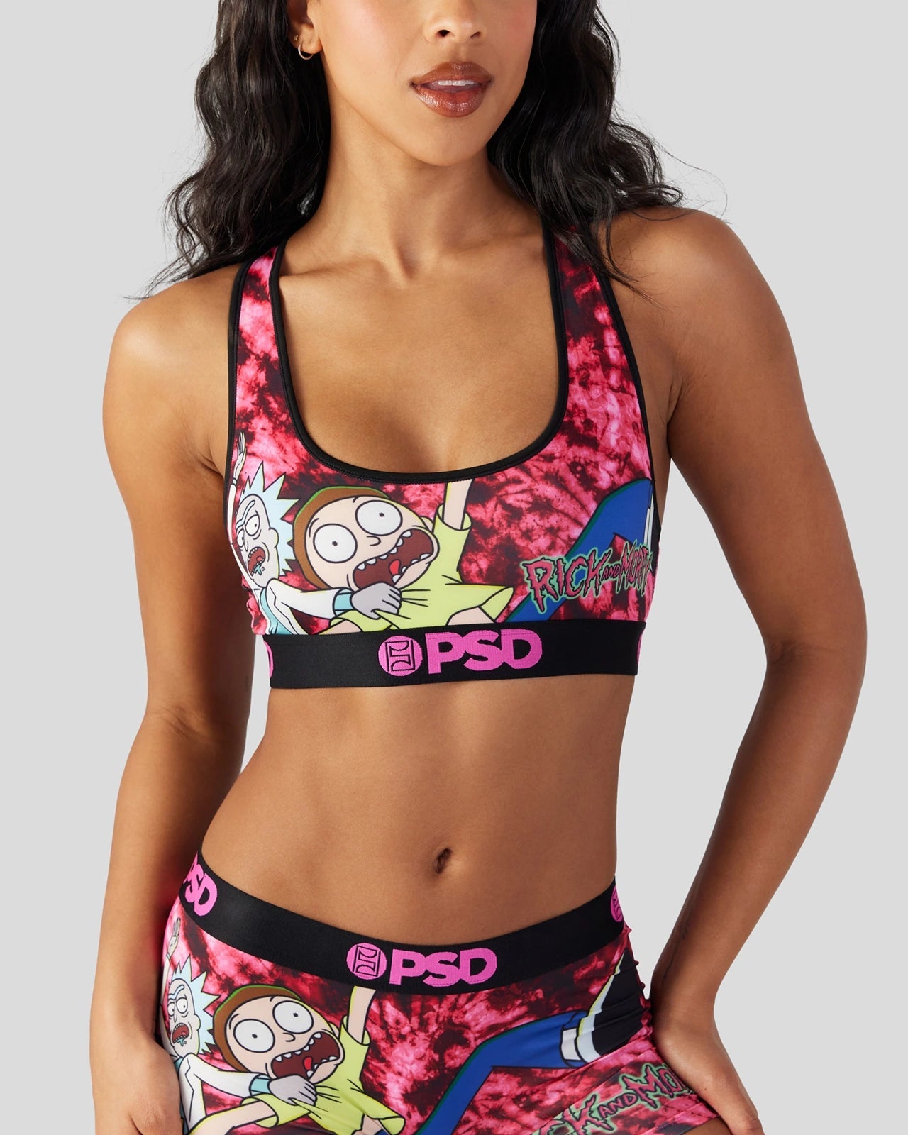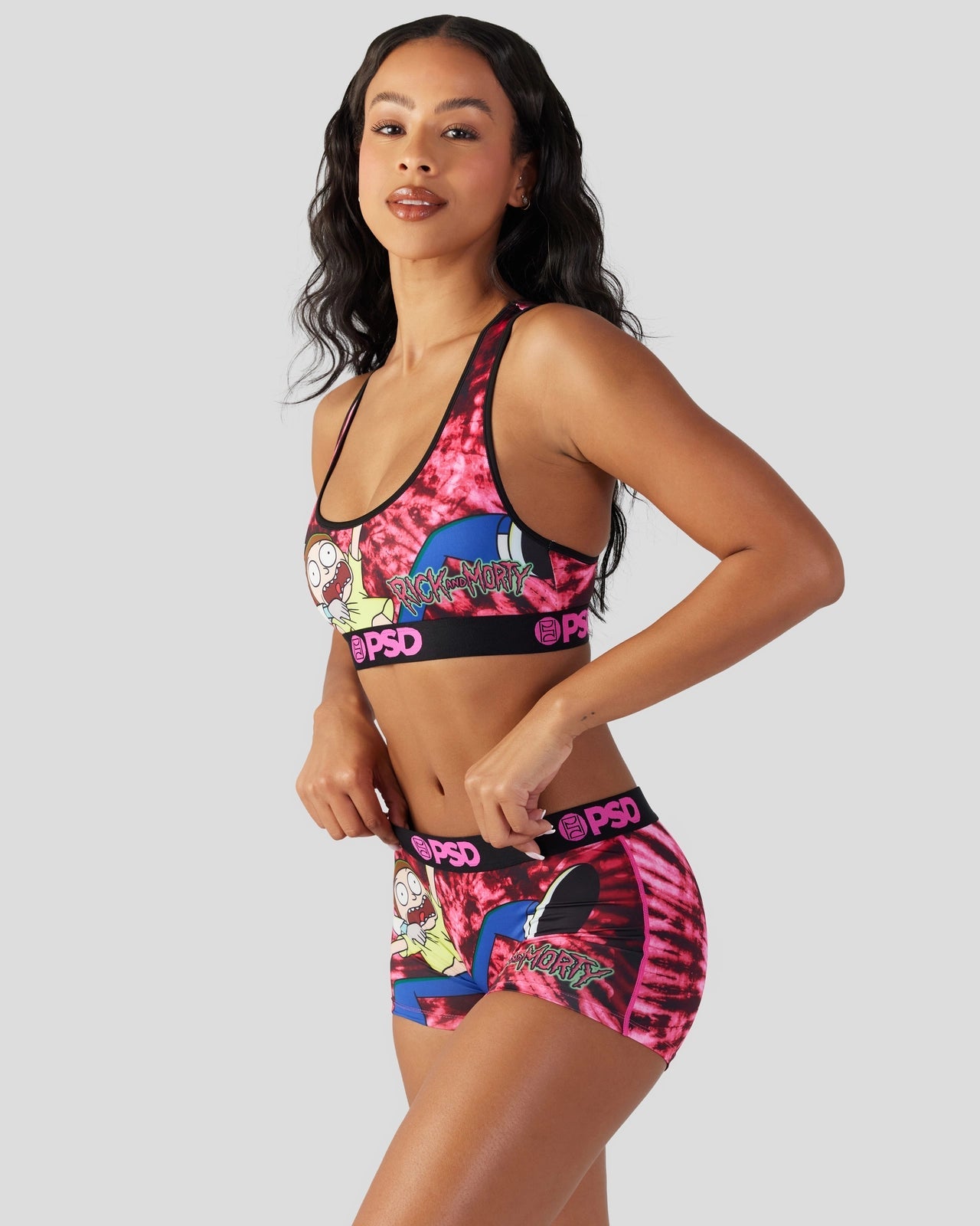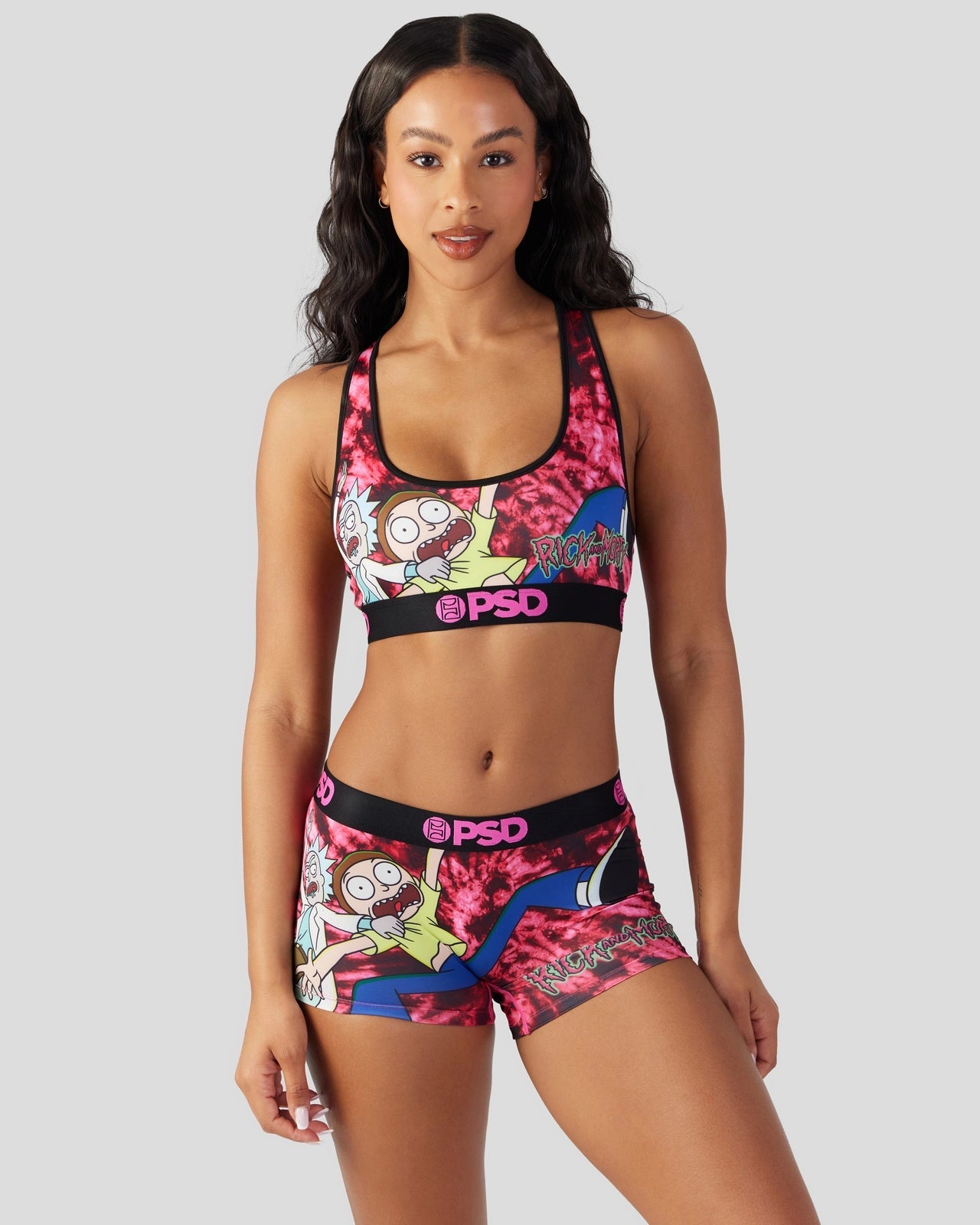 Get sucked into a time warp in this new style from Rick and Morty x PSD. The Warp Sports Bra is made from a silky poly blend with a comfortable full coverage. keep-you-in fit. The PSD boy shorts are perfect for everyday wear and working out.
