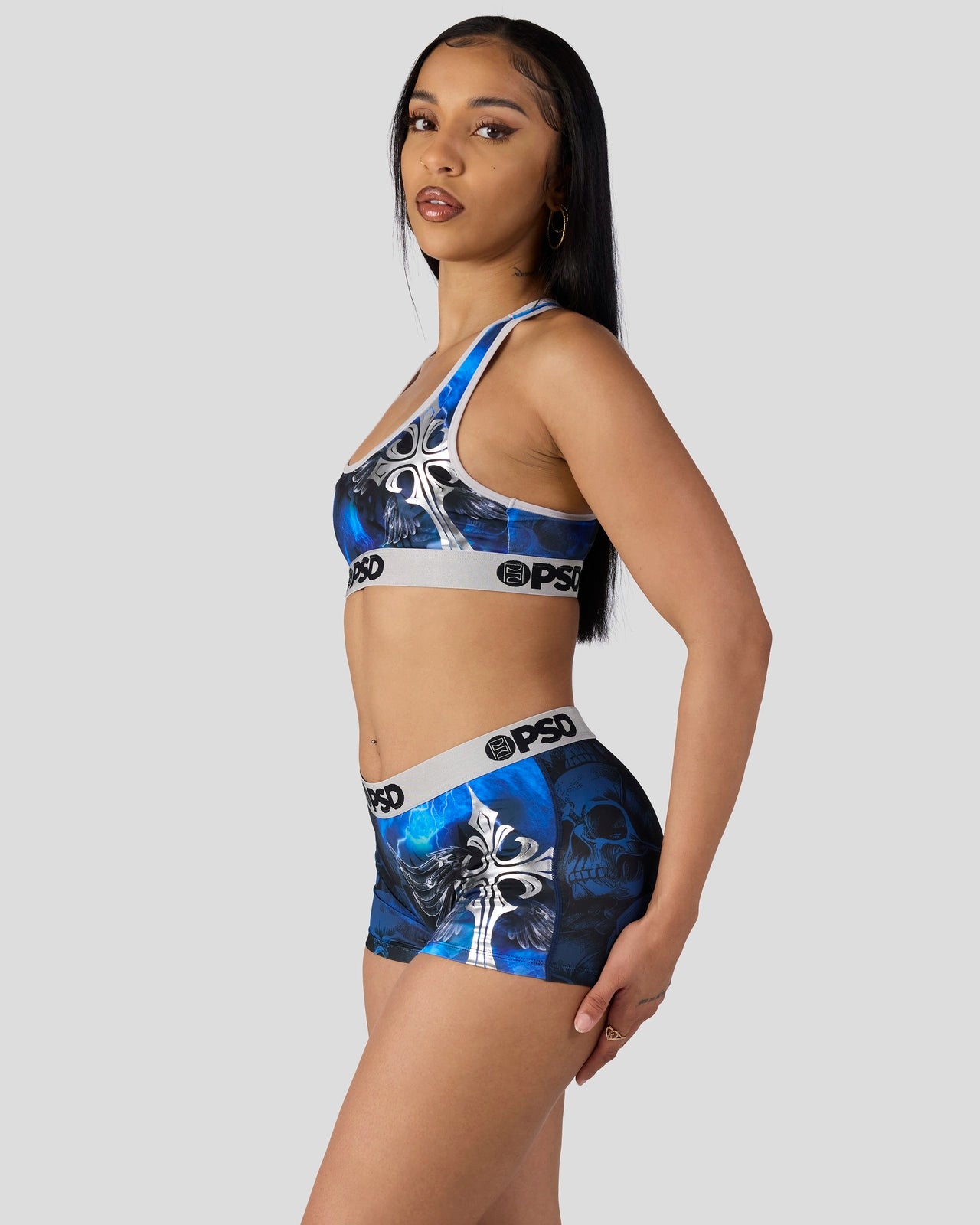 The Silver Wing Sports Bra is made from a silky poly blend that’s breathable yet slightly compressive. bringing you the comfort and support you need for everything you get into.