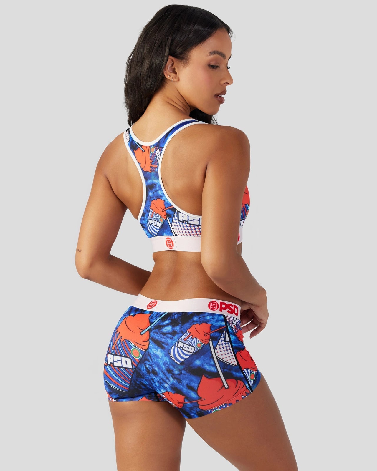 A refreshing new style so sweet you can almost taste it. The Slurp Sports Bra is made from a silky poly blend with a comfortable full coverage. keep-you-in fit. The PSD boy shorts are perfect for everyday wear and working out.