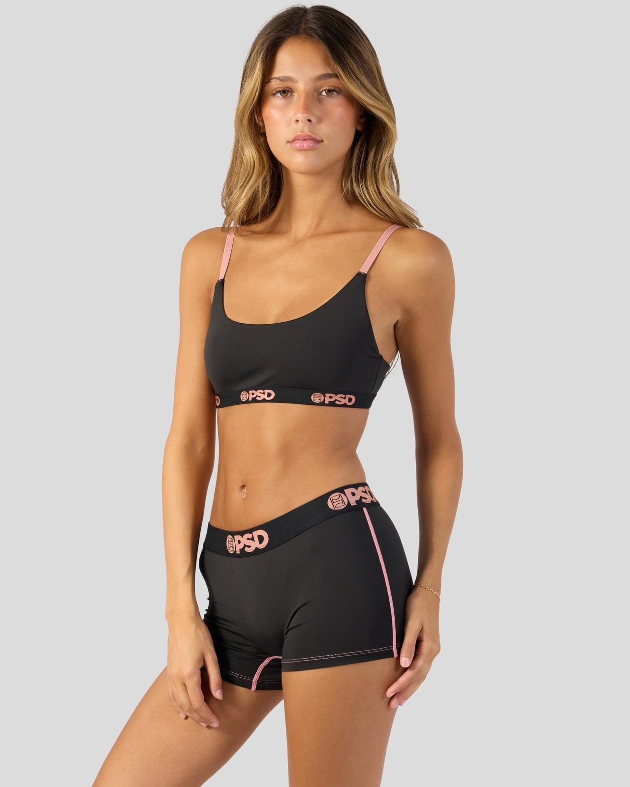 Liven up your underwear drawer with this two-toned black bra. The Black Bling Solid Scoop Bralette almost feels like you’re not wearing a bra at all. It’s fully lined and features include adjustable straps. a cute scoop neckline. and a soft microfiber band that won’t ride or rub.