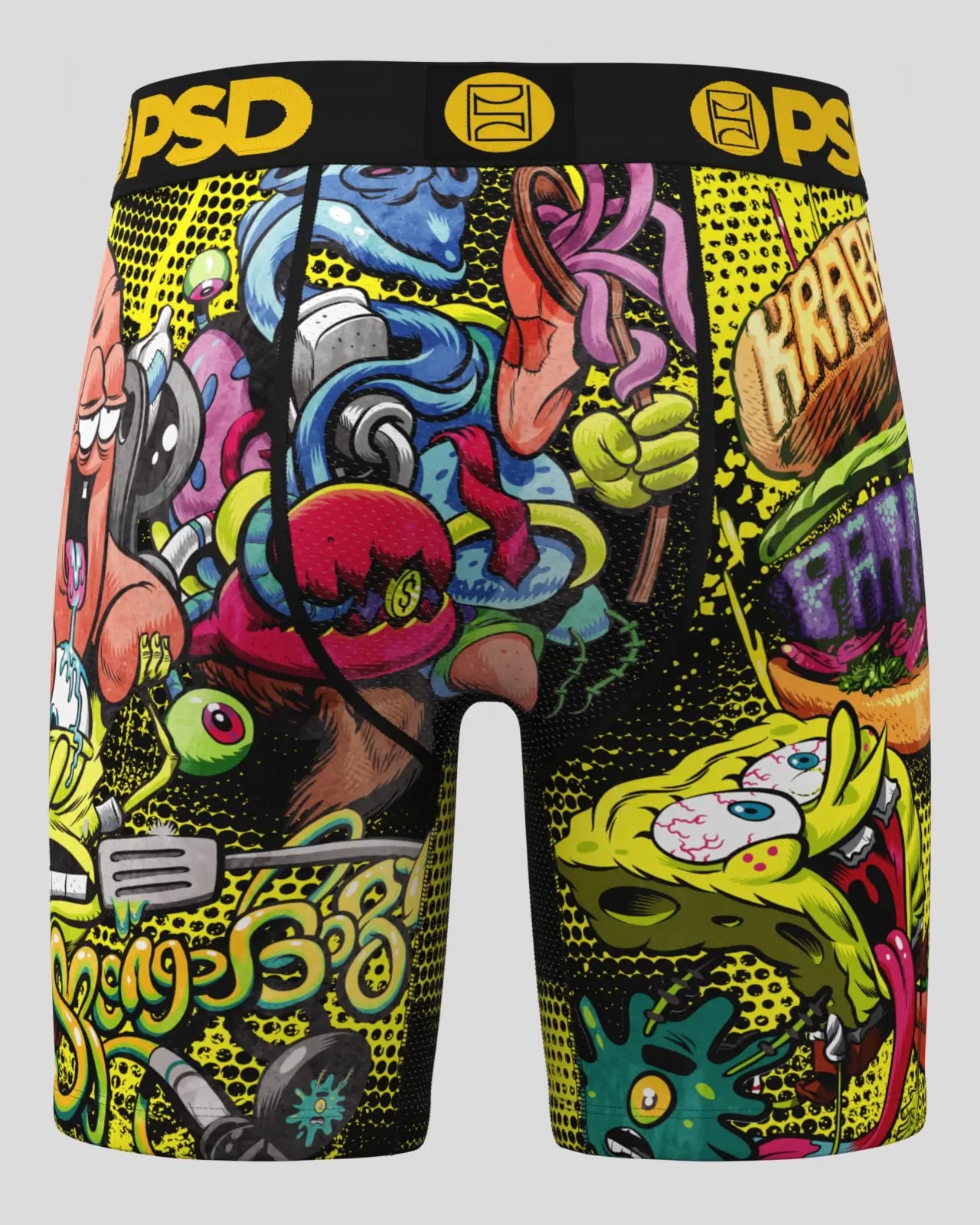 Get ready to make waves with this wacky new pair from SpongeBob SquarePants x PSD. The Krabby Patty briefs include our ultra-comfortable Signature WaistBand. a breathable MicroMesh pouch. and four-way stretch. The PSD 7 Standard Length Briefs won’t roll or ride and were built for everything. from everyday wear to your toughest workouts.
