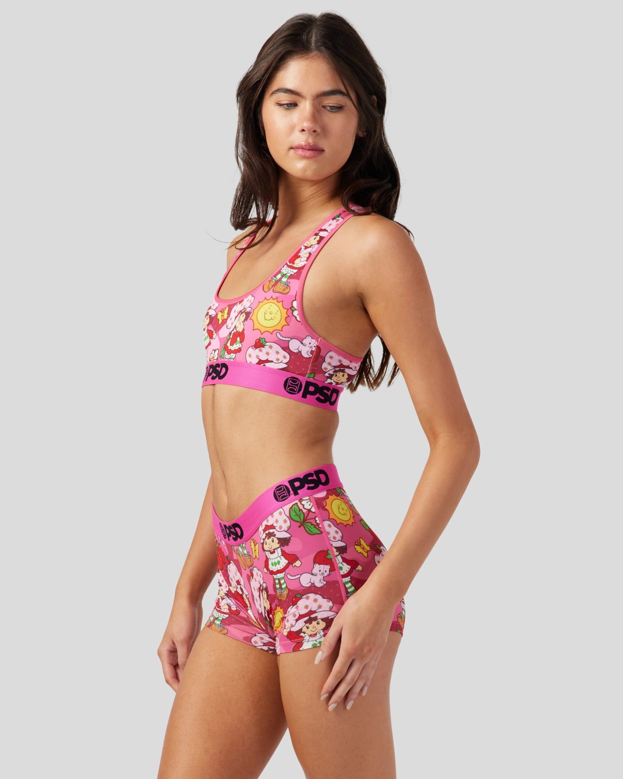 Camo takes a girly turn with the newest drop from Strawberry Shortcake x PSD. The Camo Sports Bra is made from a silky poly blend and is breathable yet slightly compressive. bringing you the comfort and support you need for everything you get into.