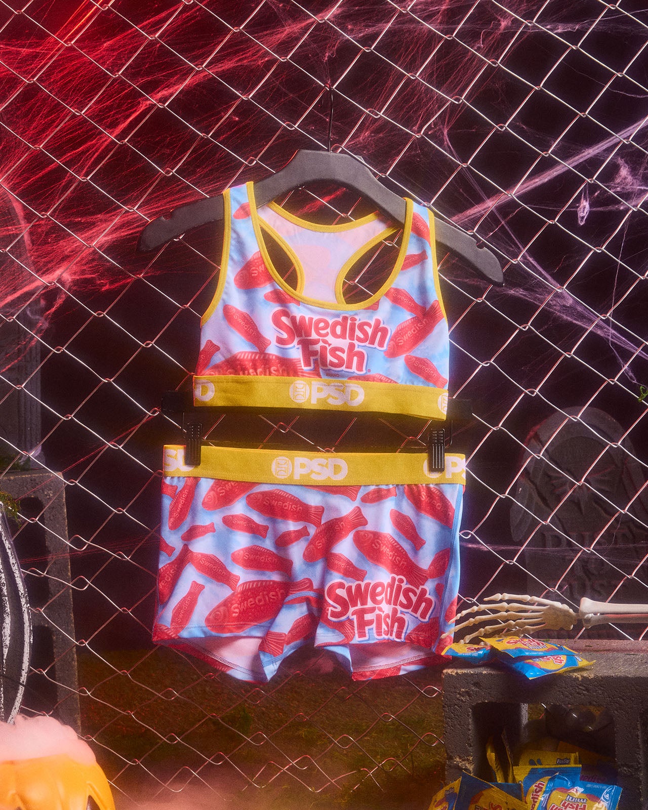 This drop is here to satisfy your sweet tooth long before you can fill your Halloween bucket. New to the candy collection. the Swedish Fish Boy Short is made from a silky poly blend with a comfortable full coverage. keep-you-in fit. The PSD boy shorts are perfect for everyday wear and working out.