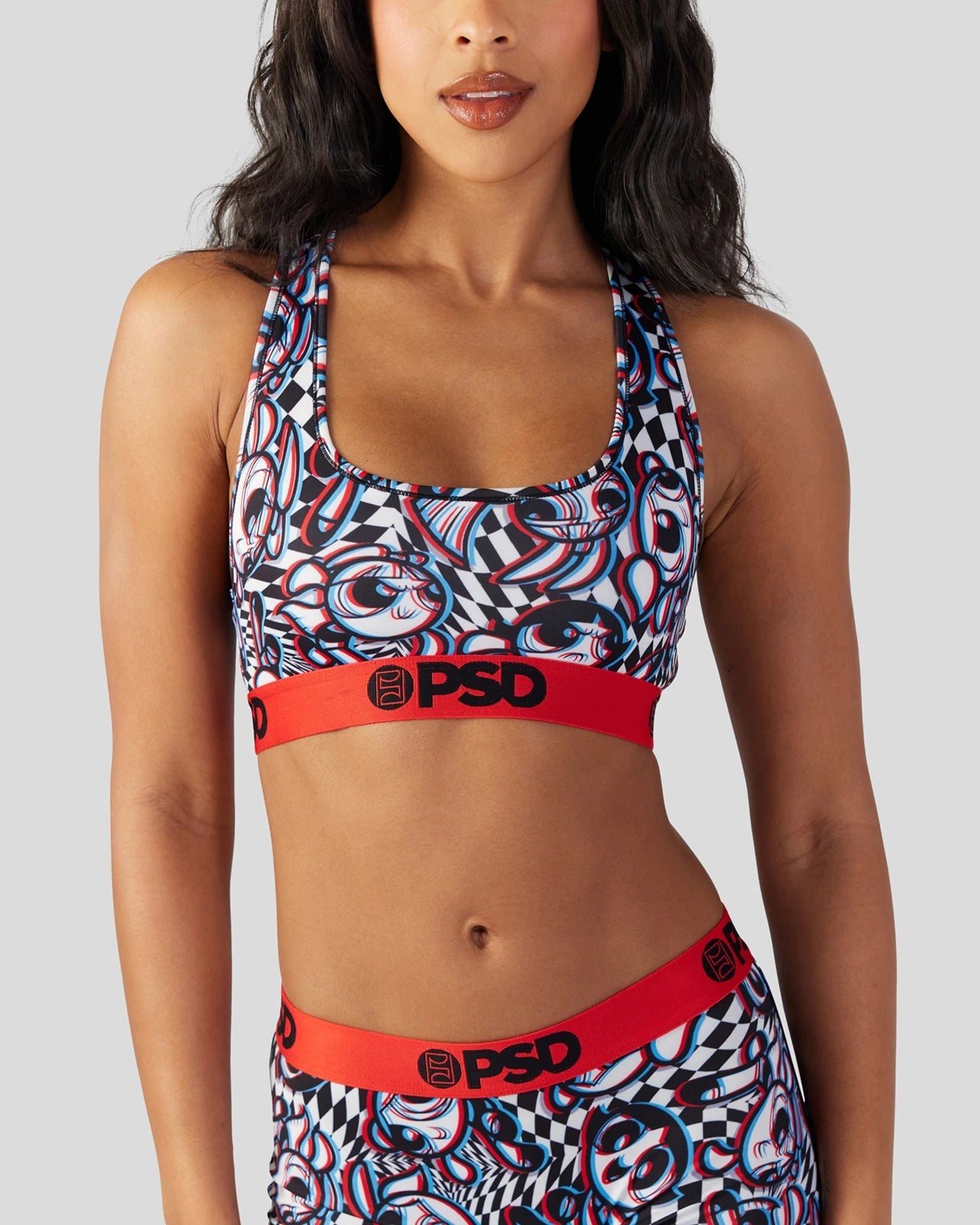 This isn’t an optical illusion. it’s the newest from The Powerpuff Girls x PSD. The 3D Trip Sports Bra is made from a silky poly blend and is breathable yet slightly compressive. bringing you the comfort and support you need for everything you get into.