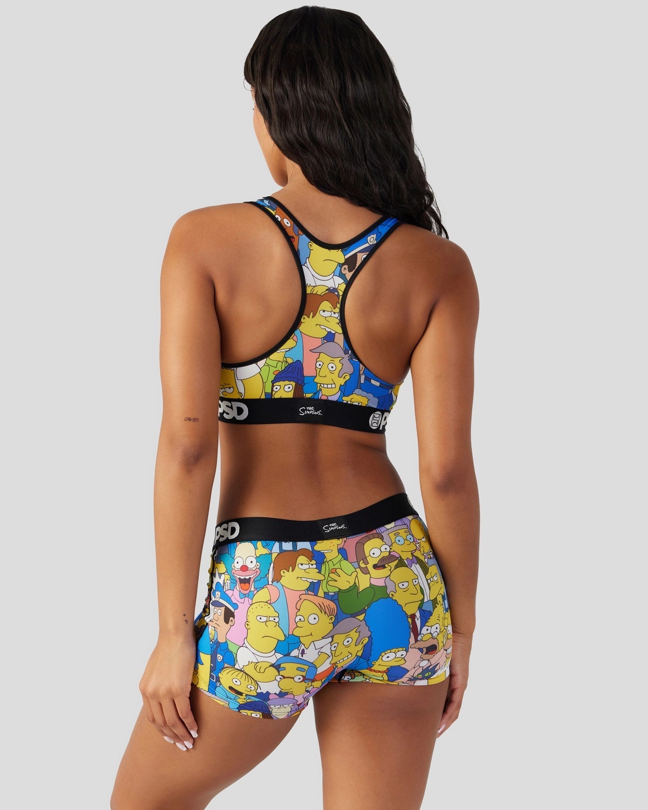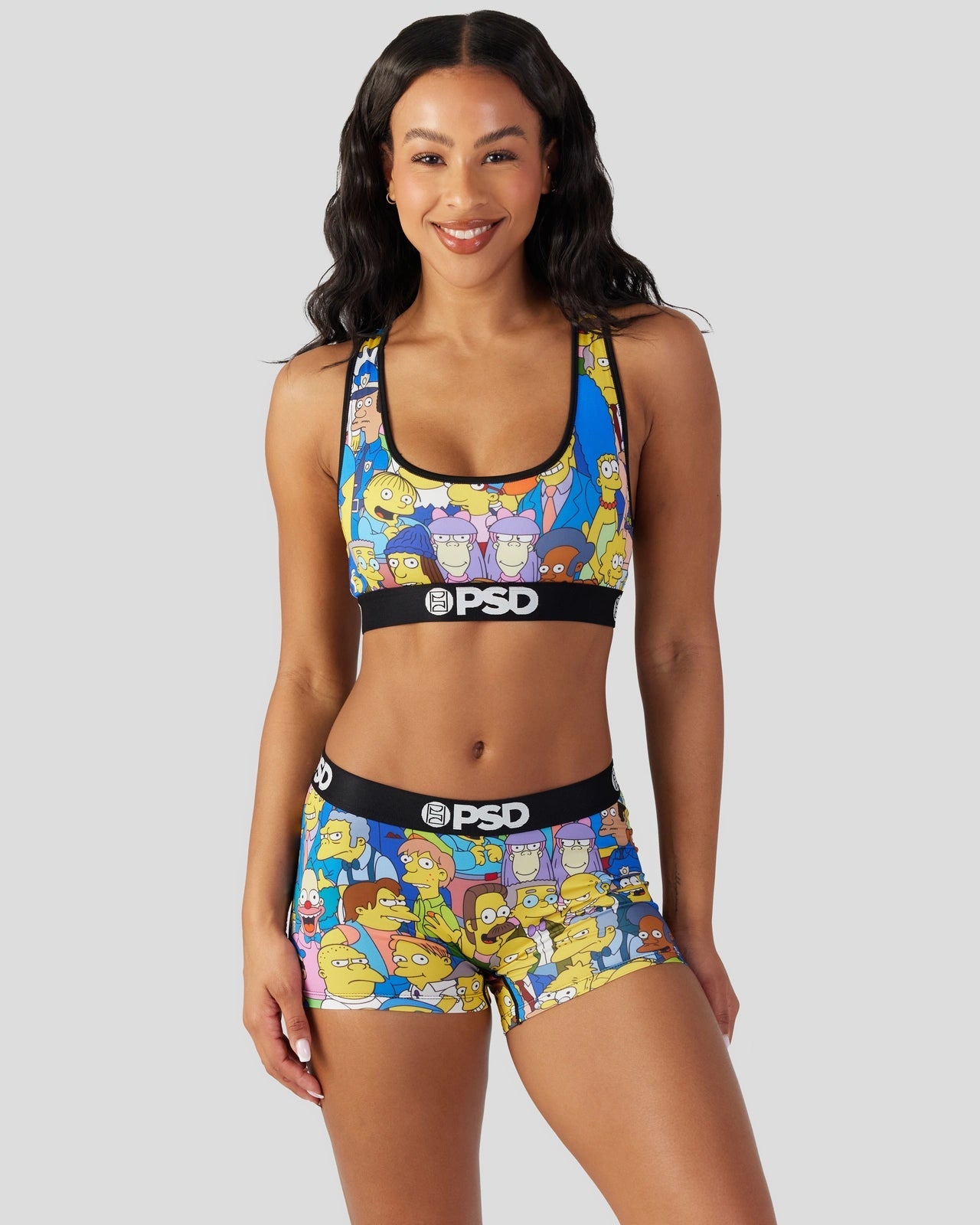 All your favorite Springfield residents come together in this brand-new pair from The Simpsons x PSD. The Squad Sports Bra is made from a silky poly blend with a comfortable full coverage. keep-you-in fit. The PSD boy shorts are perfect for everyday wear and working out.