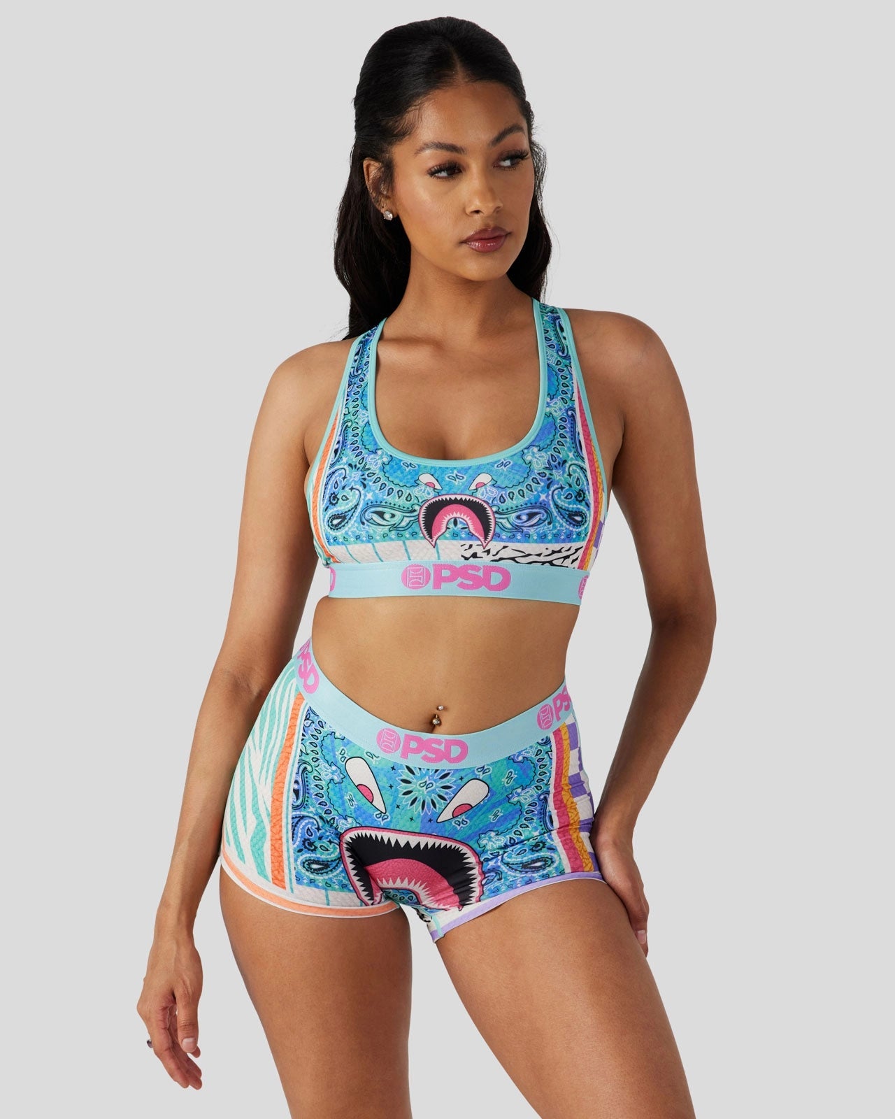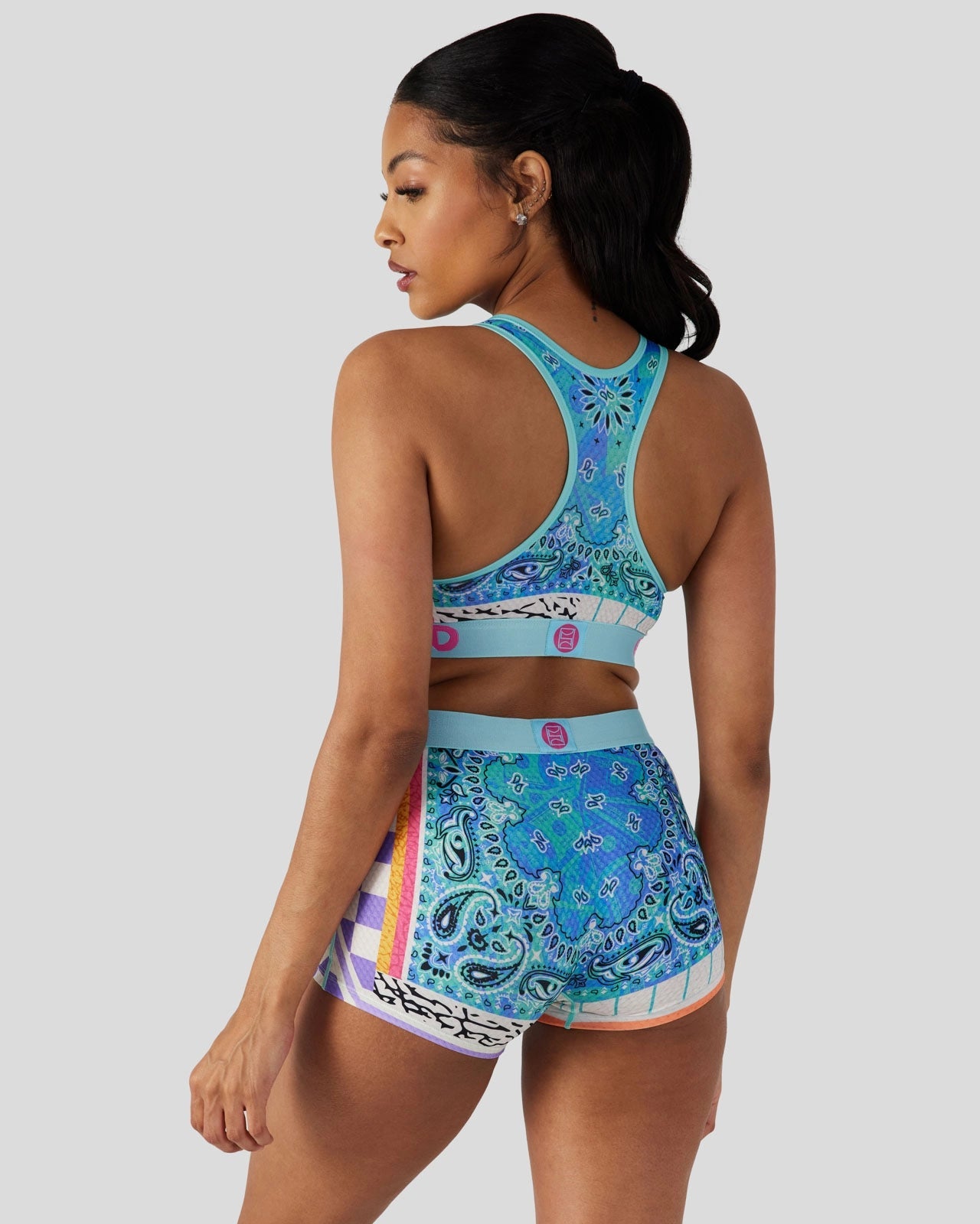 The Warface Fest Sports Bra is like a festival with all our favorite prints headlining. including bandana. checkers. stacks of cash. and more. Made with our silky poly blend. this bra is breathable yet slightly compressive. bringing you the comfort and support you need for everything you get into.