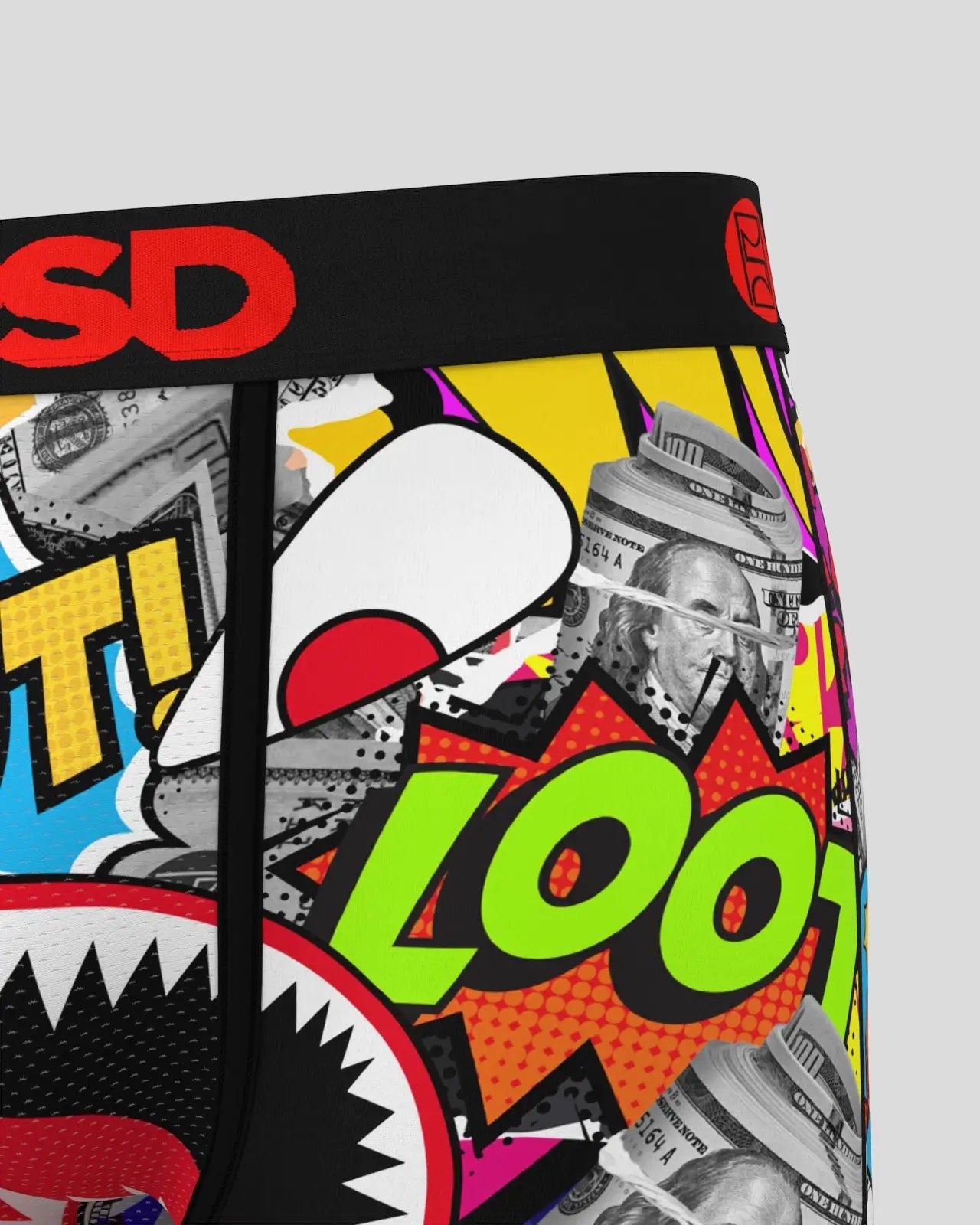 Featuring a cartoon-inspired design. the Warface Loot briefs include our ultra-comfortable Signature WaistBand. a breathable MicroMesh pouch. and four-way stretch. The PSD 7 Standard Length Briefs won’t roll or ride and were built for everything. from everyday wear to your toughest workouts.