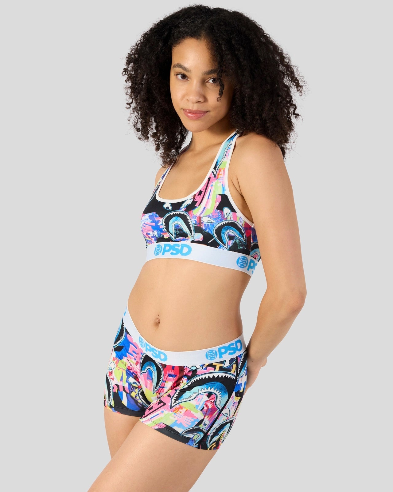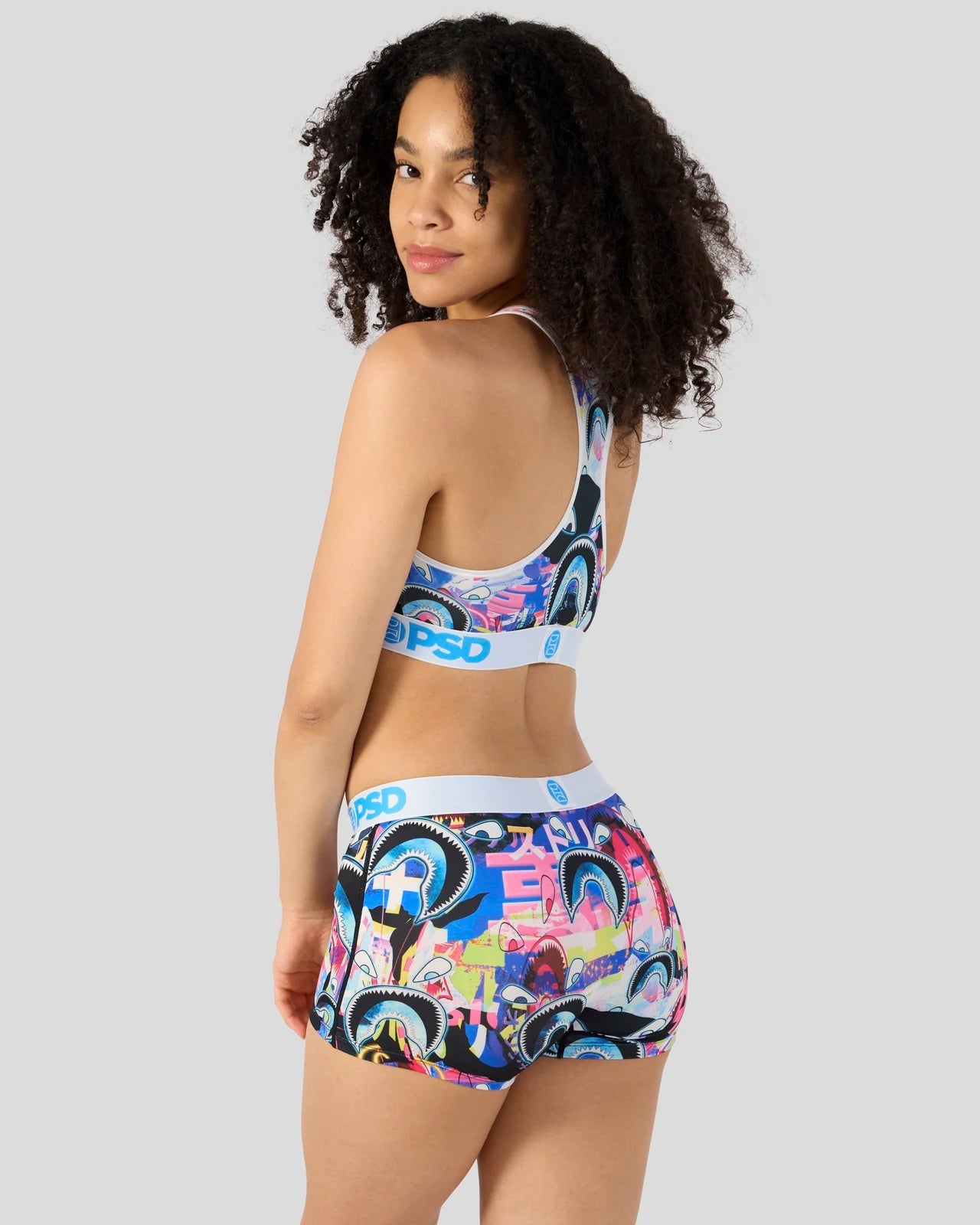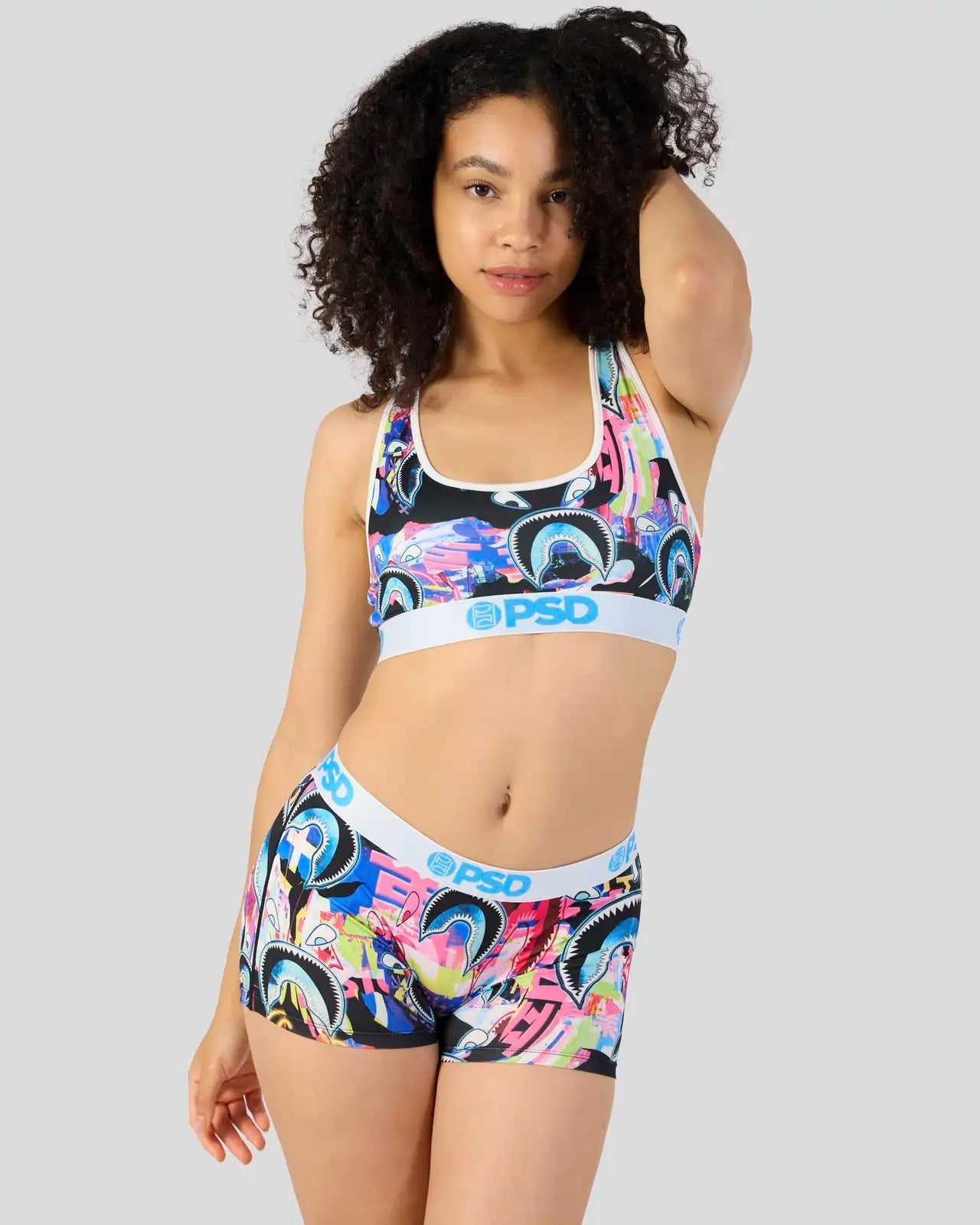 The Warface Shark Glitch Boy Short is made from a silky poly blend with a comfortable full coverage. keep-you-in fit. The PSD boy shorts are perfect for everyday wear and working out.