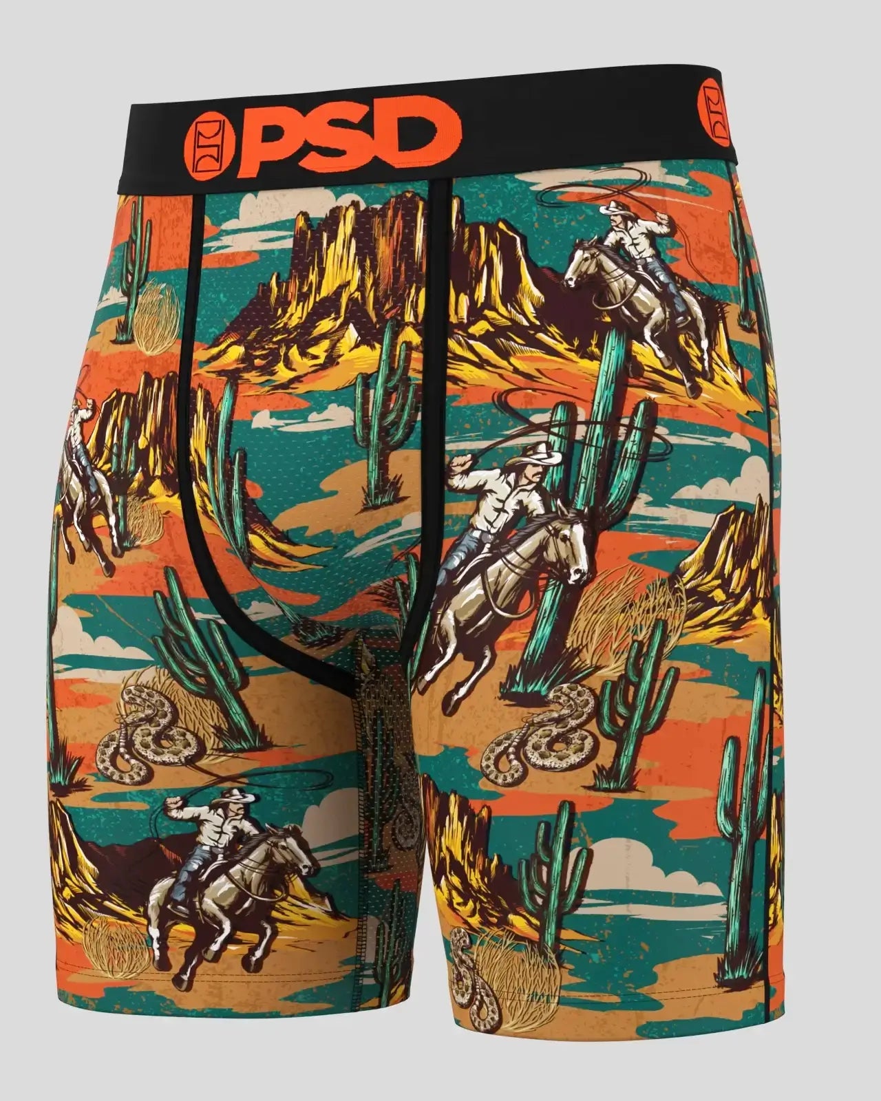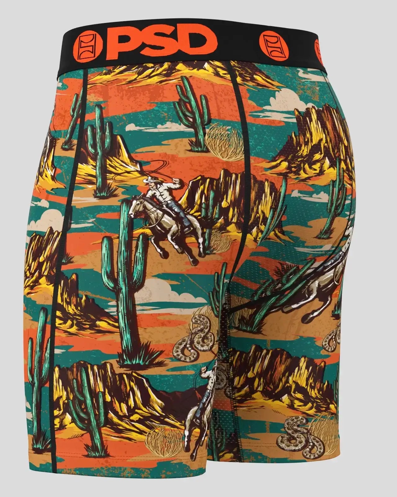Find your giddy up in this new Western-inspired pair. The Deserted briefs include our ultra-comfortable Signature WaistBand, a breathable MicroMesh pouch, and four-way stretch. The PSD 7??? Standard Length Briefs won???t roll or ride and were built for everything, from everyday wear to your toughest workouts.