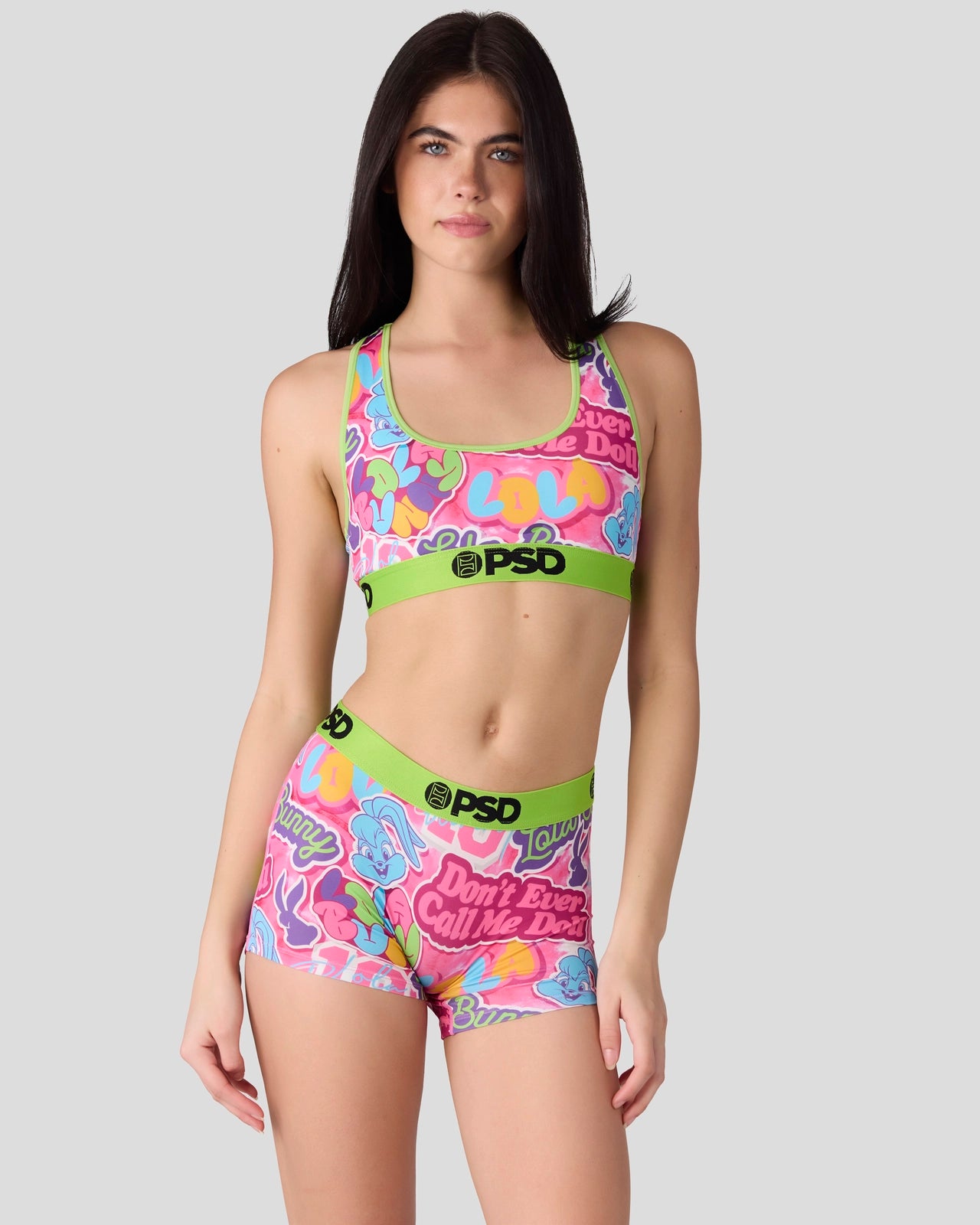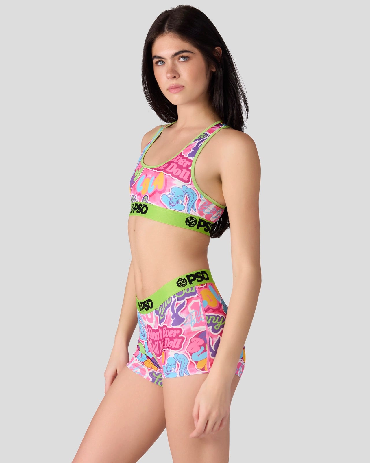 The Don’t Call Me Doll Sports Bra from Looney Tunes x PSD is made from a silky poly blend and is breathable yet slightly compressive, bringing you the comfort and support you need for everything you get into.